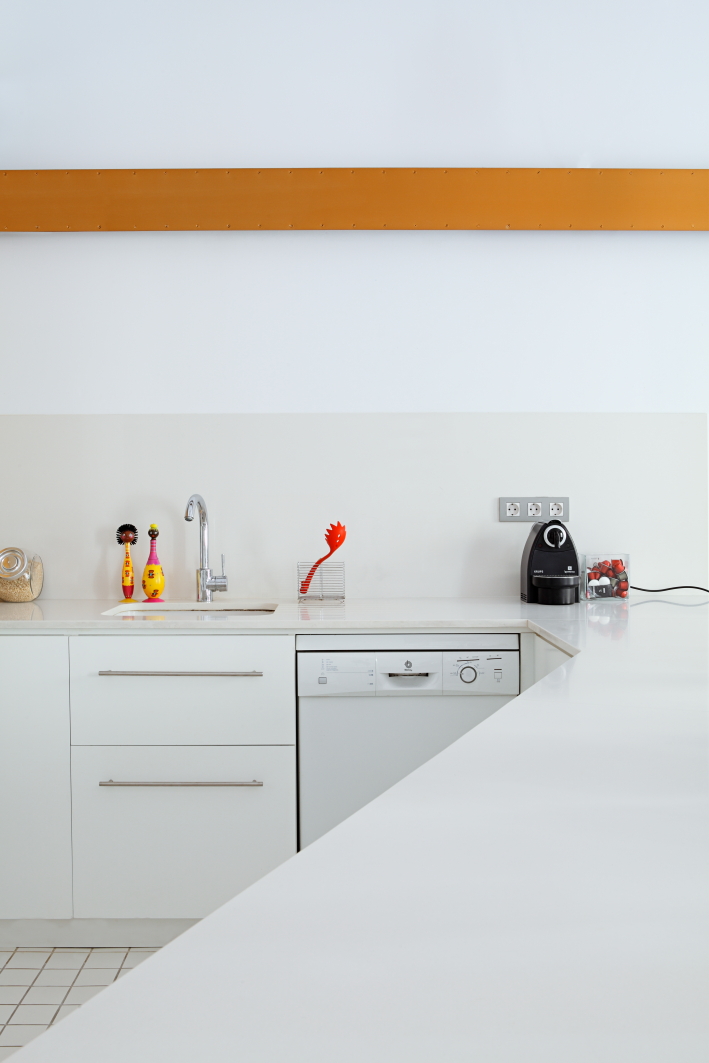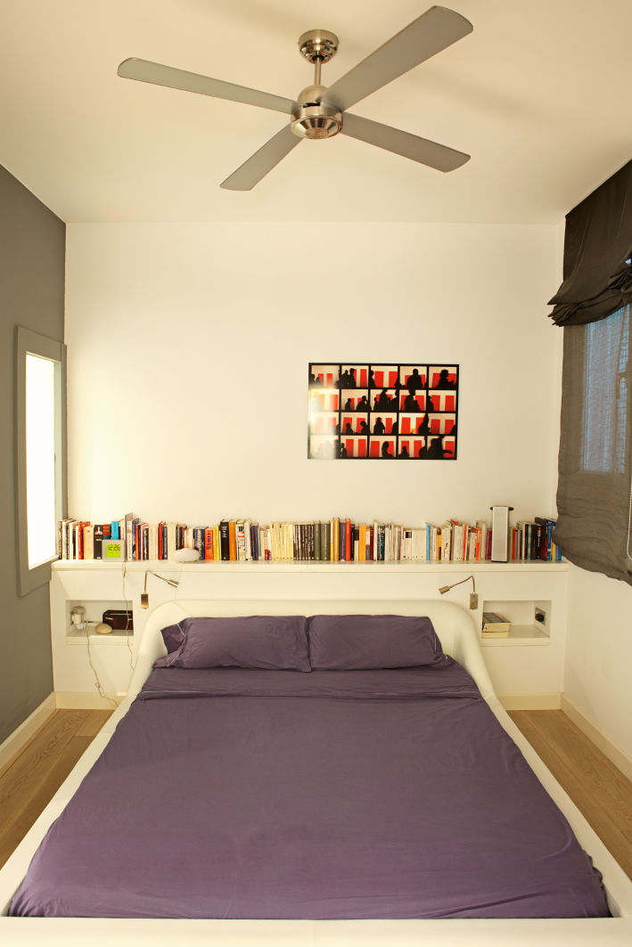 From the studio of the apartment a geometric pattern in the Cartesian plot emerged, a diagonal axis crosses the spaces, from the entrance door, an intermediate passage area and one of the large windows overlooking the street. Hence the project's diagonal axis was formed.
