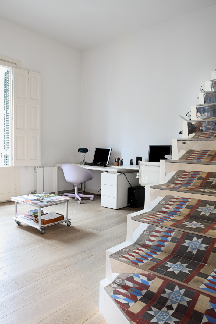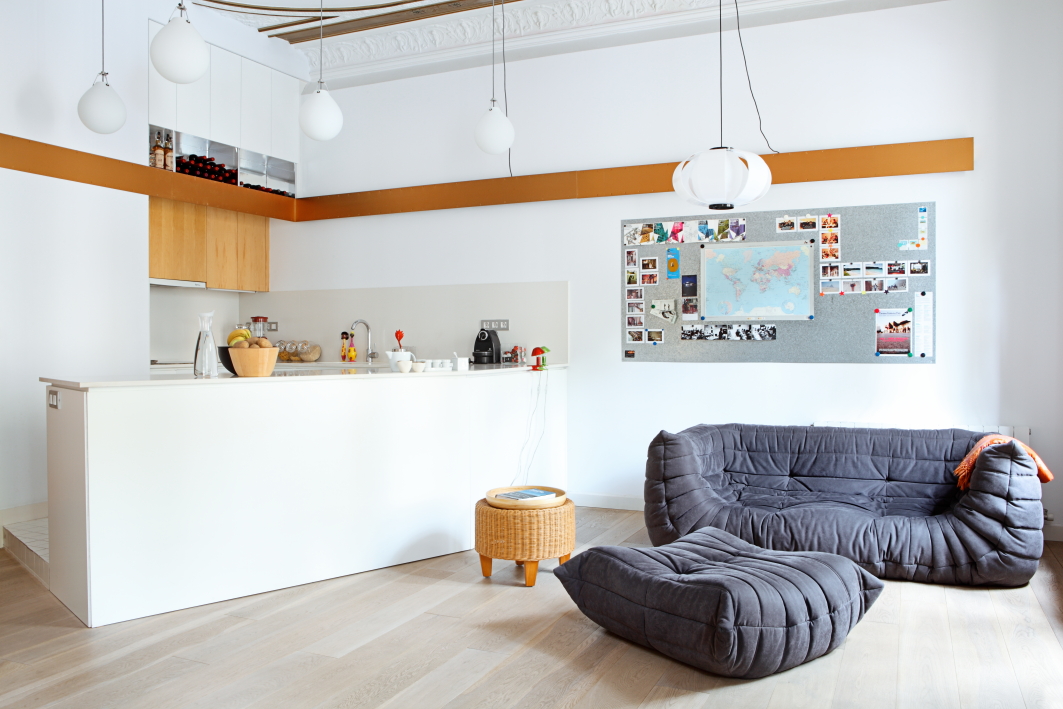 The renovation is a reinterpretation of the spatial structure of the apartment from the late 19th century, typical of Barcelona: with the succession of the isolated rooms
