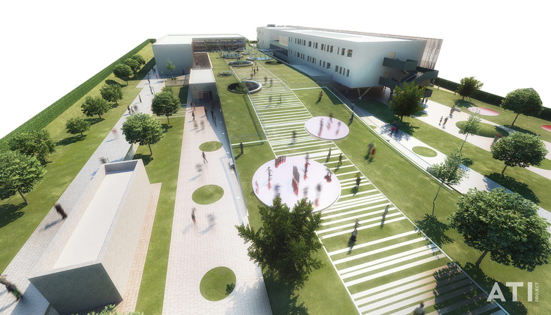 Il complesso accoglierà non solo i nuovi spazi didattici ma anche un auditorium, una palestra ed una biblioteca condivisi con la cittadinanza: la scuola diventerà cosi un vero e proprio centro civico stabilendo una forte connessione con il quartiere e la città