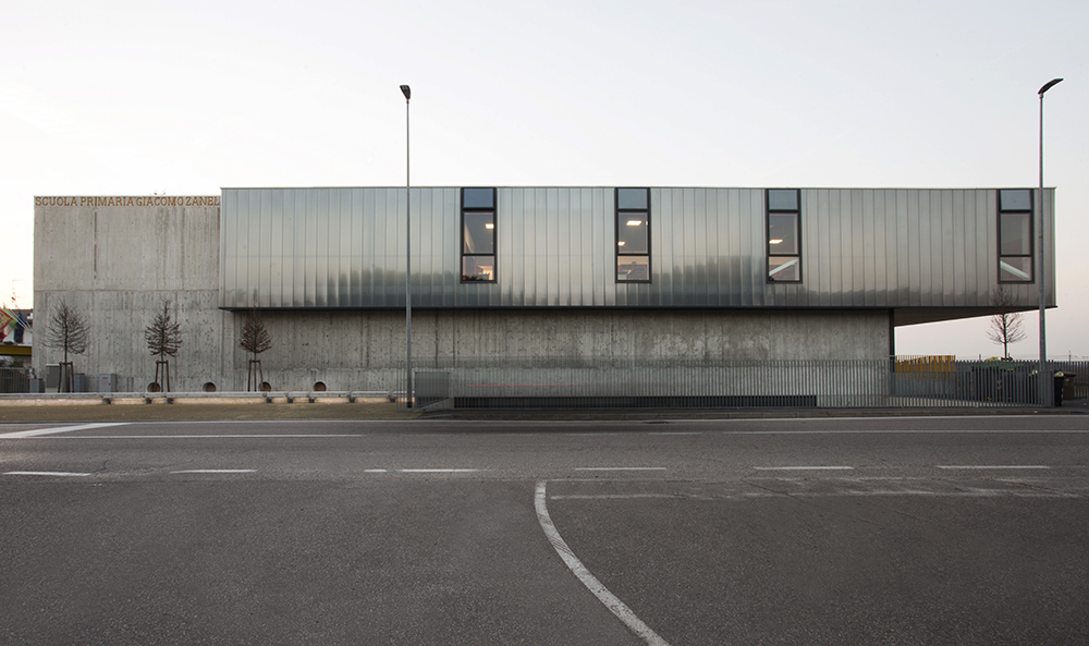The facade of the upper floor of the school is made of polycarbonate, which has a strong insulation coefficient, with gray tones on the outside and white on the inside. In this way the classrooms are equipped with an entire wall that produces diffused natural light