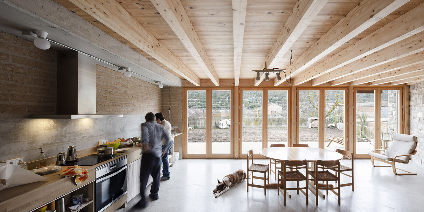 A farm shed has been renovated and repurposed as Senior Cohousing by arqbag in order to accommodate two families. The reorganisation of spaces takes into account the importance of having individual, family, community and even neighbourhood spaces