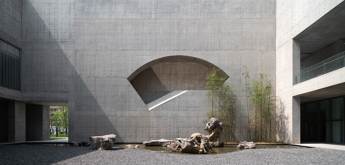 Shou County is located in the centre of Anhui Province. In ancient times, it was the home of the Chu culture and where Liu An, King of Huainan built a new township southeast of the old town on what used to be farmlands. The building was to include an art gallery, a cultural centre, a library and an archive. Zhu Pei studied the cultural roots of Shou County by observing old dwellings and ruins. The oriented living patterns with the vertical courtyard of the house facing inwards and the narrow alleys extending in all directions connecting the houses to each other reflect the local lifestyle and indicate the rules of construction