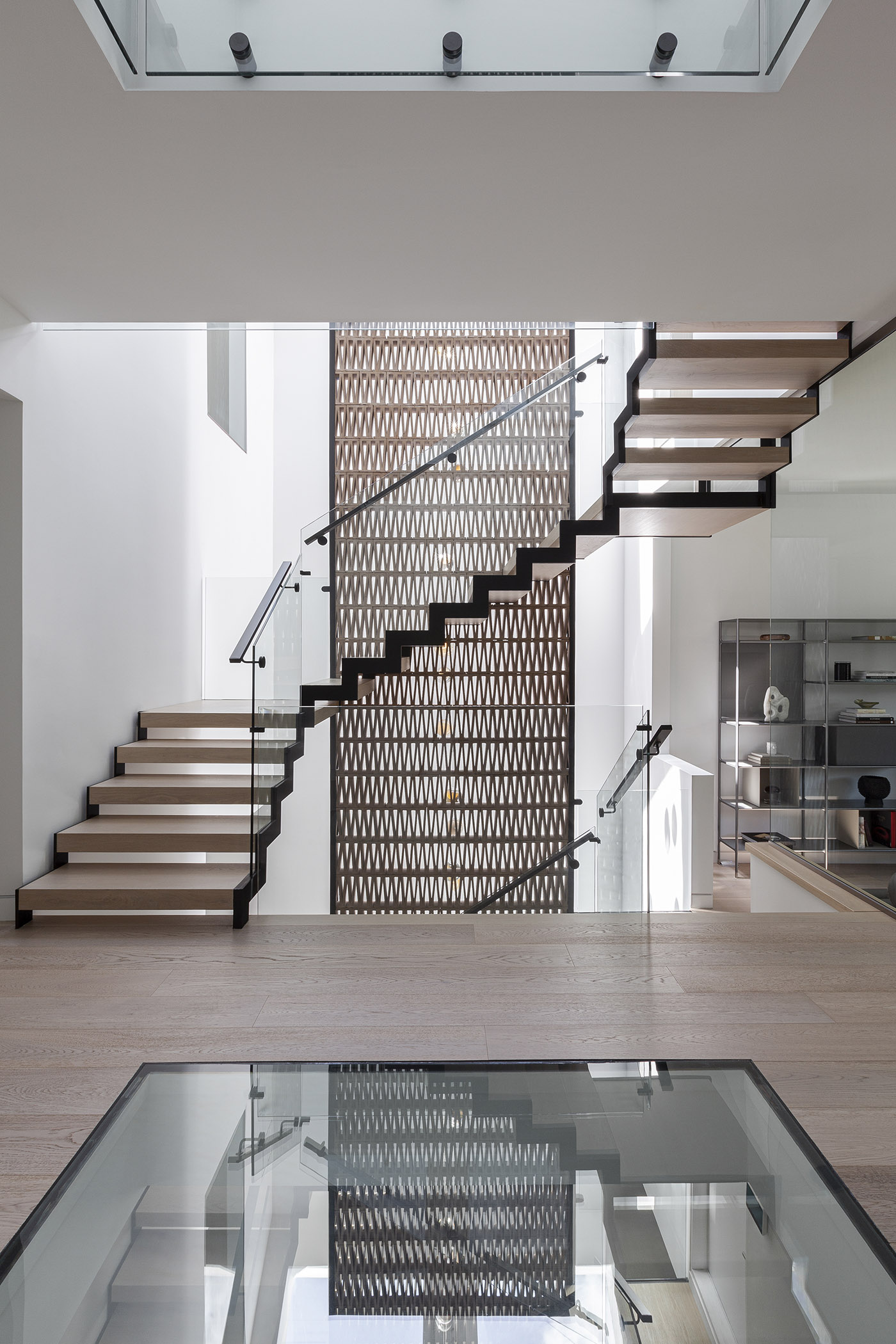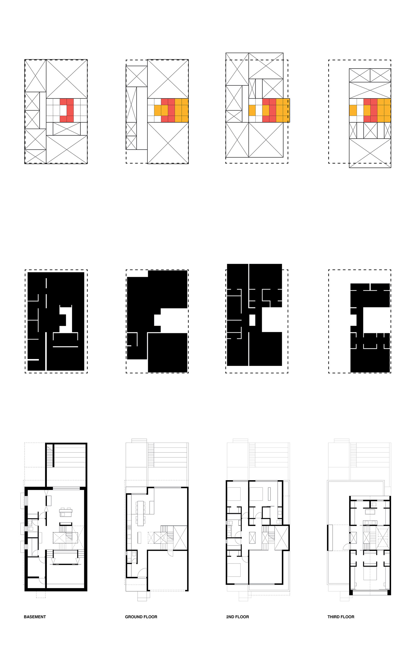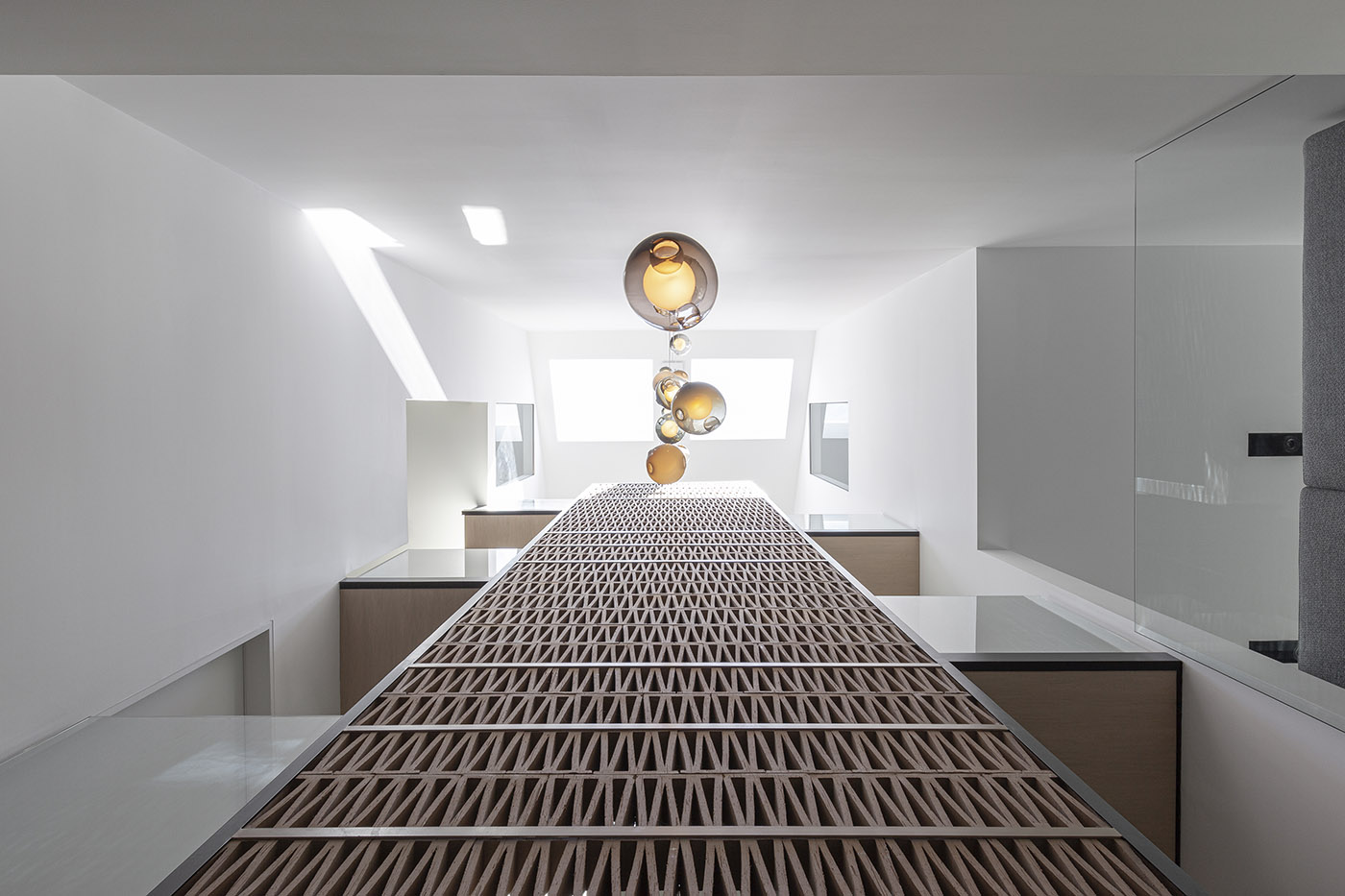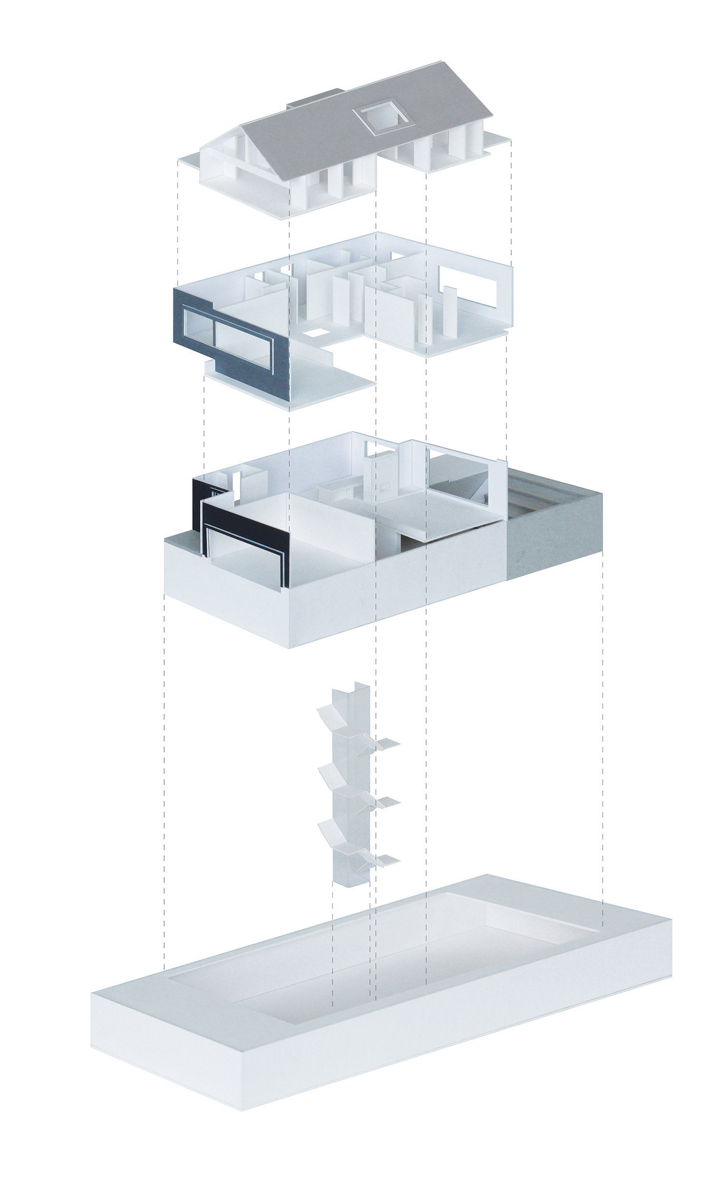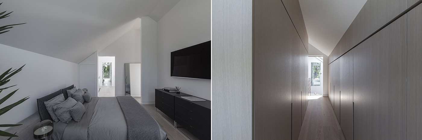 Among the various creative architecture projects, the Stack House is designed by Atelier RZLBD as a composition of three blocks: the lower one, containing the communal space, is finished in stucco; the central block, which houses transitional spaces like the multipurpose room on the mezzanine floor, is finished in charred wood; and finally, the upper block with its more private areas, such as the master bedroom and bathroom, is finished in metal panels. A dark gray color serves as a background and highlights the differentiation of volumes, creating a contradictory image of monumentality and intimacy.