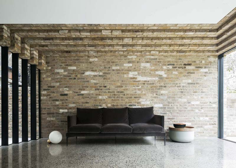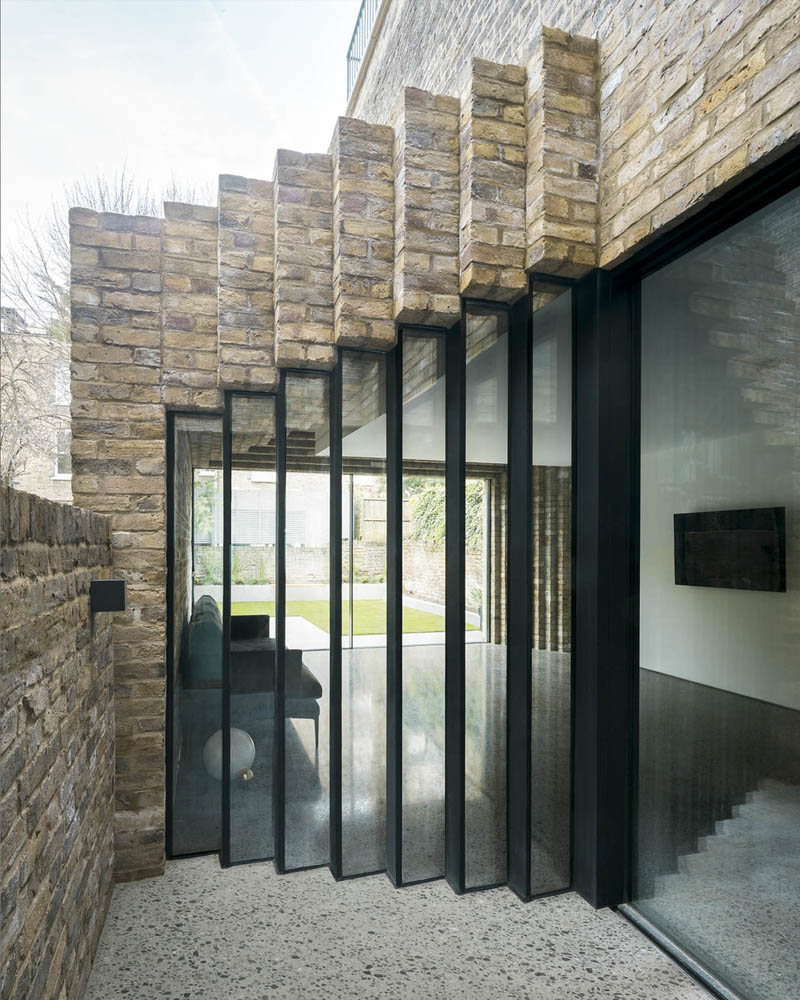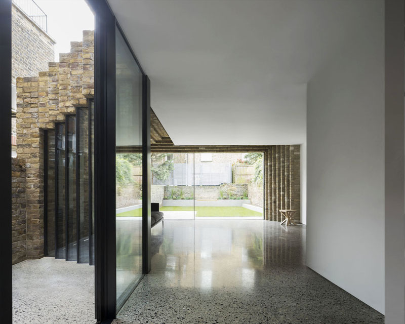 Instead of the more anticipated glass structure, the Bureau de change studio reinvents the traditional terraced house, highlighting and celebrating the use of brick. Bricks recovered from the fabric of the house are used so that the extension seems to dissolve from the existing structure.