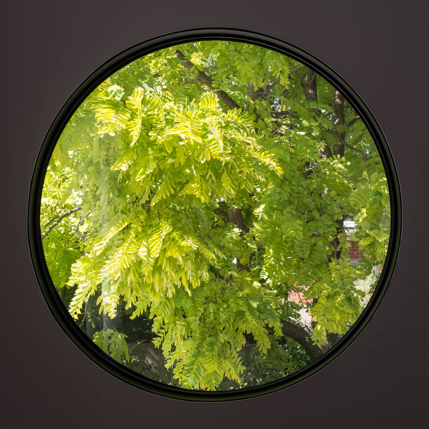 The pavilions and spaces in between are framed by circular windows that are like magnifying glasses for nature, creating intimacy and more opportunities for interaction with the outside world. Extending upwards, on the second floor, the pavilions turn into a long linear volume housing the sleeping area