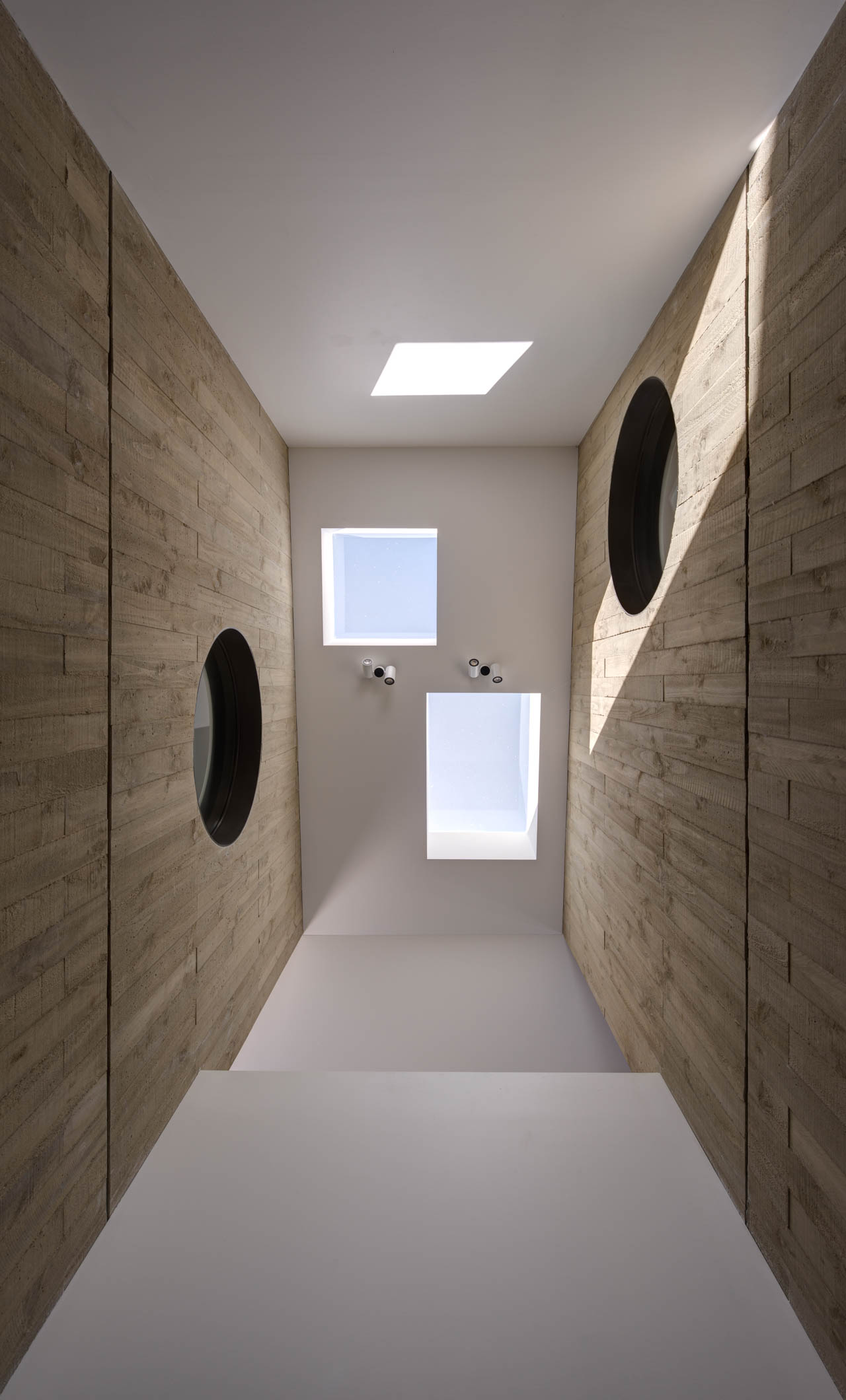 The upper level is articulated as an elegant cantilevered beam. Following the diurnal path of the sun during the day, the light wells of the double-height courtyards become a constantly animated orchestra of light and shadow, connecting the occupants with the cycles of nature