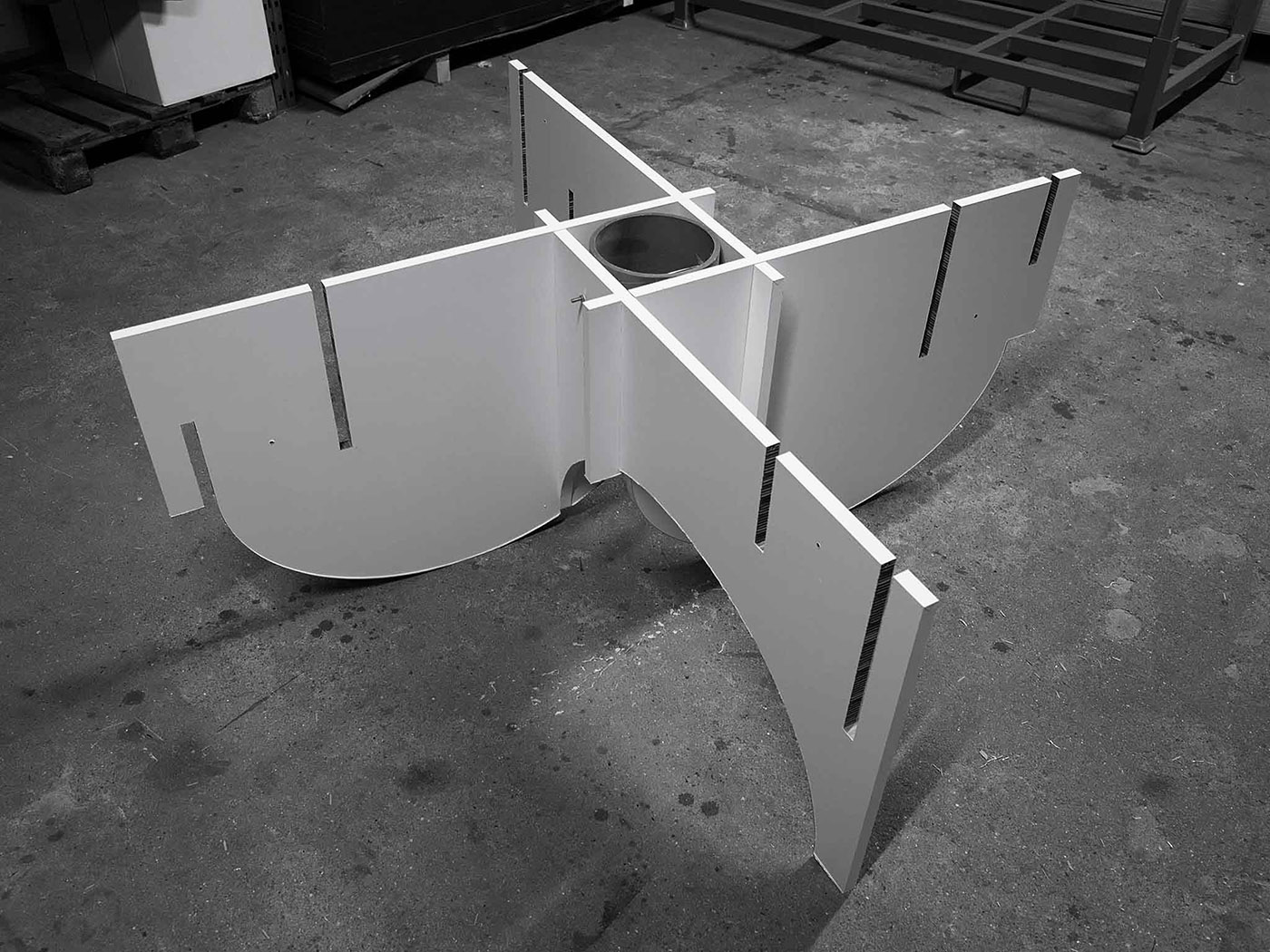 The pavilion was designed as a temporary structure, therefore the choice of construction materials and the option to demolish it from its components played an important role in the design. In fact, the structural system consists of many small elements easy to handle, as well as being easy to transport and assemble without the use of large machinery, this also enables a simple construction on site. In the pavilion only reversible joints, which can be interlocked or screwed have been used to guarantee the recycling of wood and paper materials after disassembling.