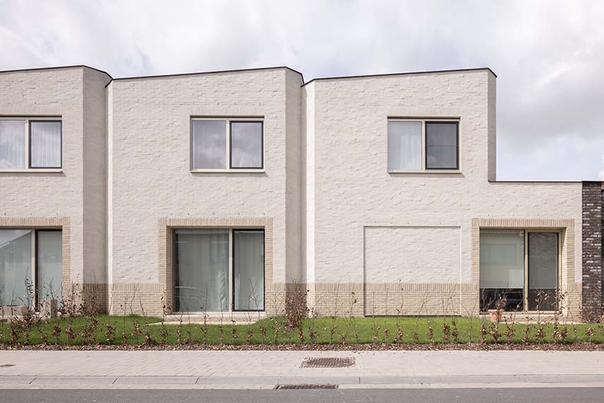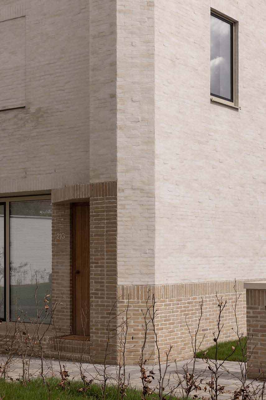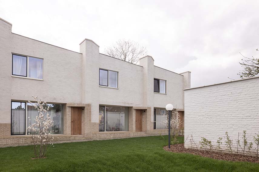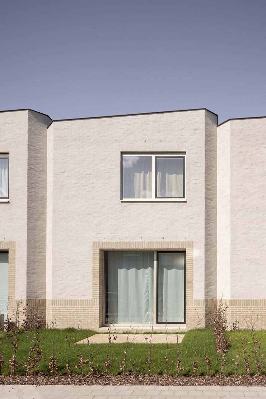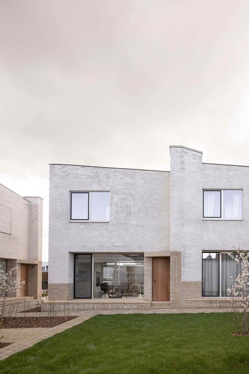 Ten Boomgaard, designed by WE-S architects, is located on a corner lot in Bruges, Belgium. Here, the Beguinage, settlements where religious women retired to live together, characterizes the urban fabric. In the same way, the seven new homes create a living space that lies between private and collective, recalling in the volumes that gather around a common outdoor space, the compositional and aesthetic characteristics