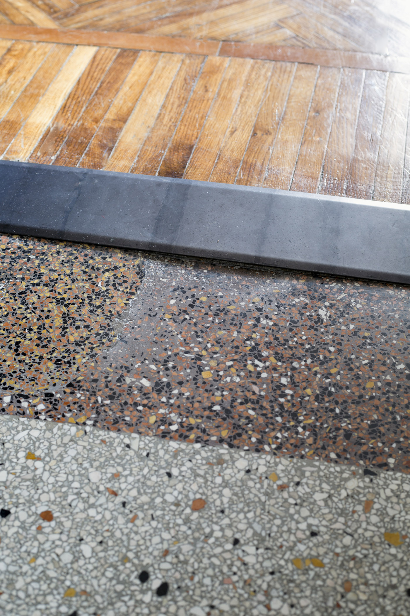 Following the design intent of honoring the original essence of the space, the pre-existing floors are maintained and restored: parquet and marble grit remain the protagonists, brought back to life