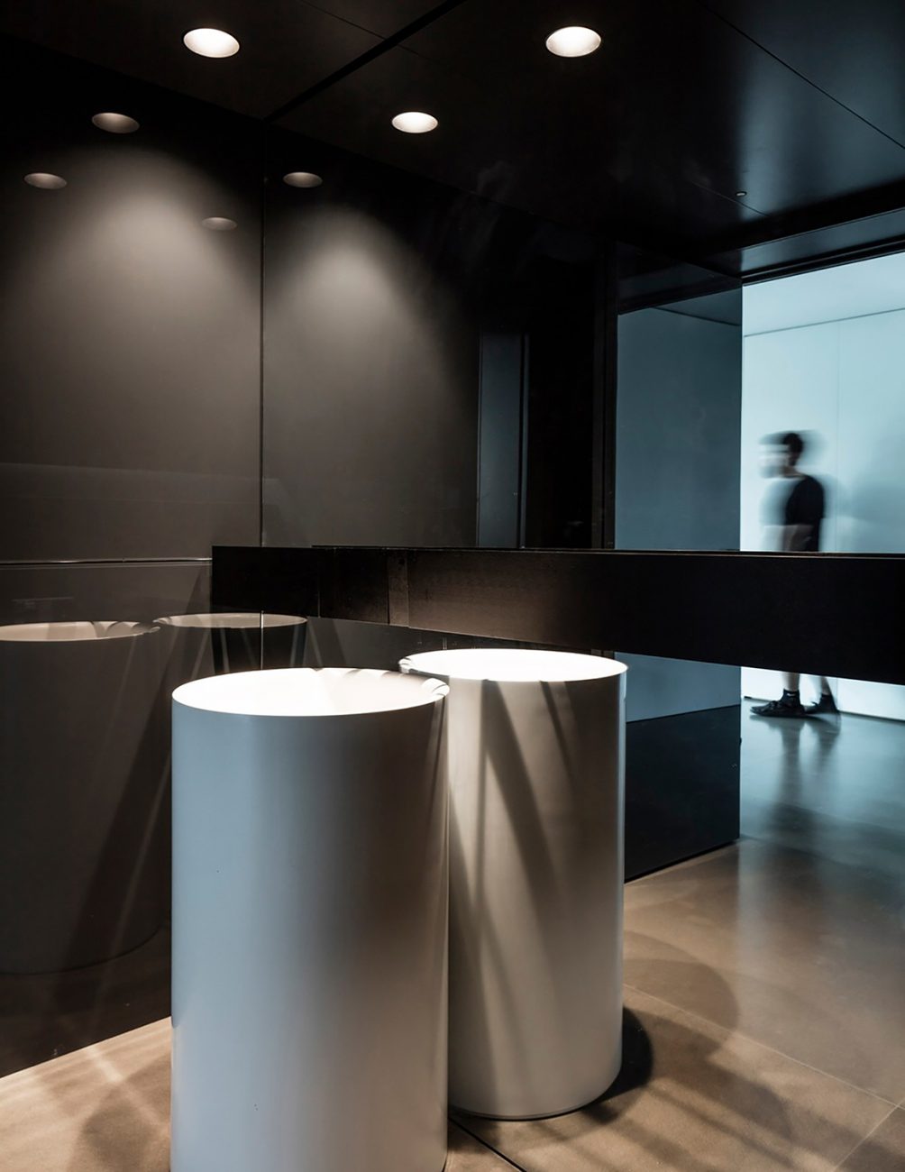La superficie in vetro del nucleo nero riflette immagini del paesaggio in tutta la casa, rafforzando l'idea di vivere nella natura. La semplice chiarezza delle superfici contrastanti - in bianco e nero o lucido e opaco - è una delle caratteristiche unificanti ripetute nel design interno e nell'architettura dell'involucro dell'edificio
