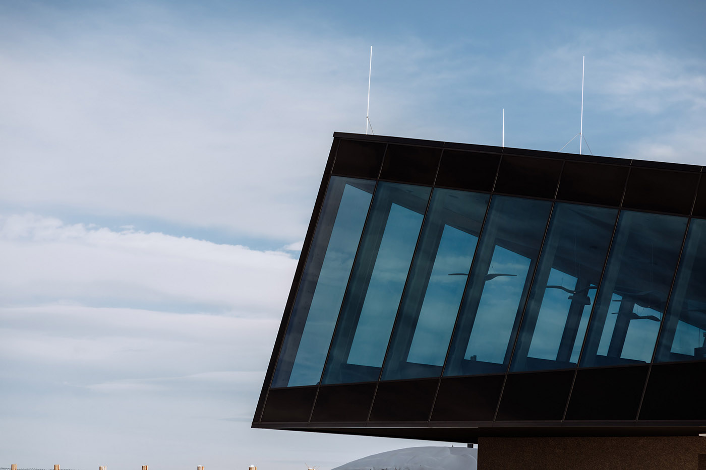 The main elevations of the restaurant to the north and east are made entirely of glass and offer spectacular views of the landscape. The remaining parts of the facades are also made of glass and alternate with closed panels