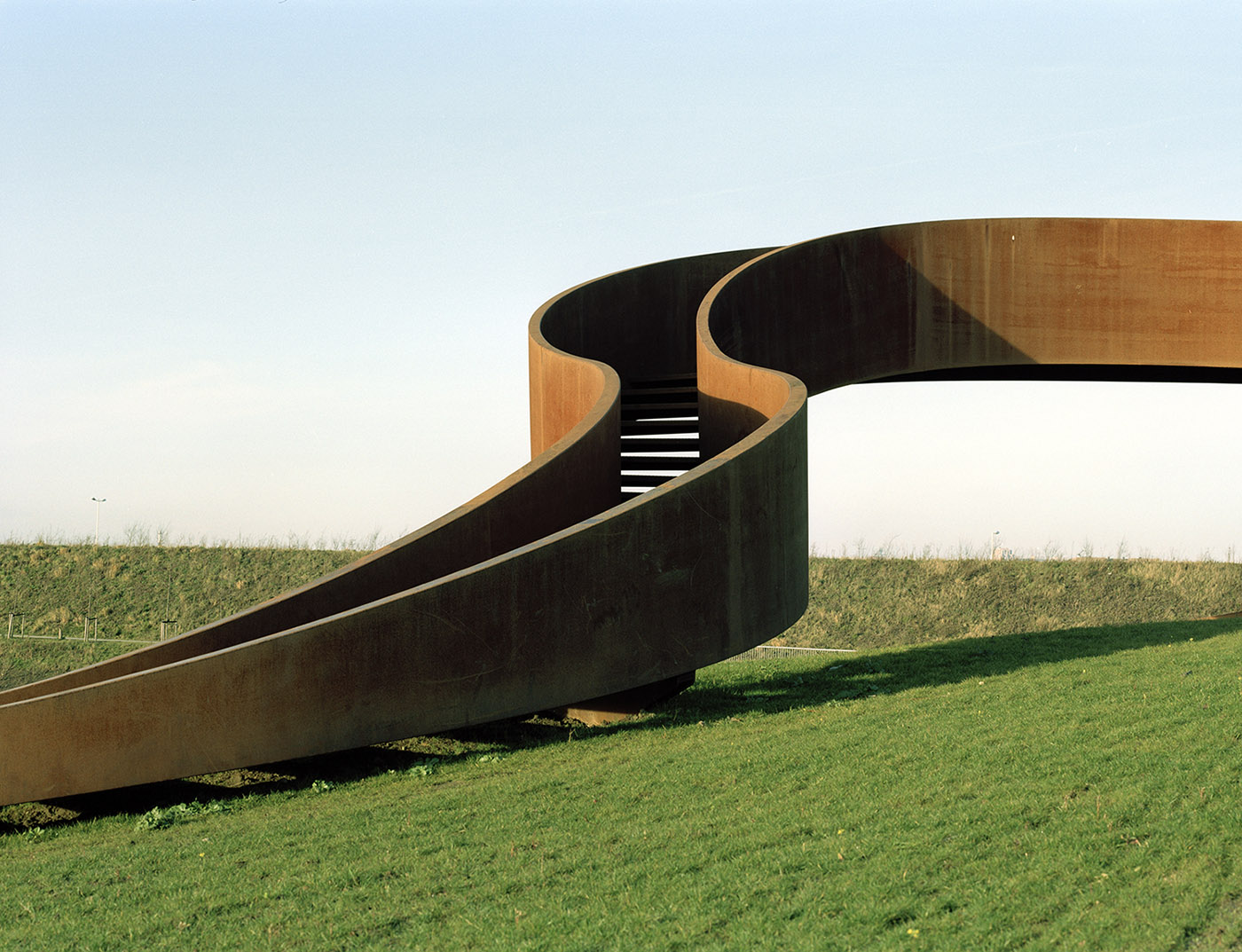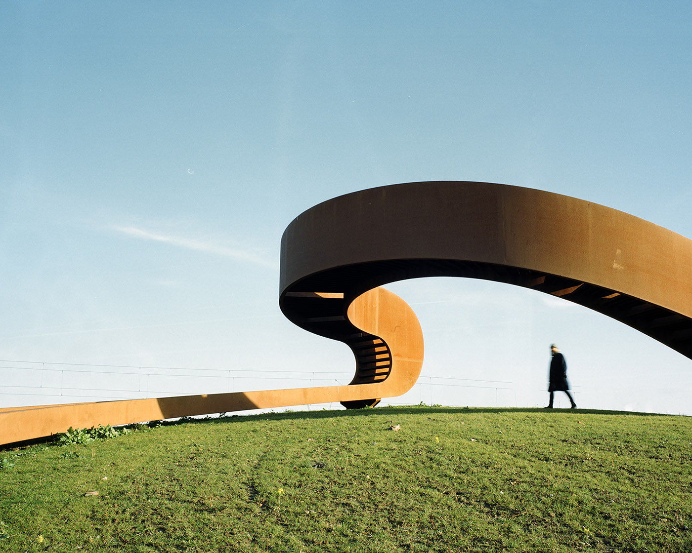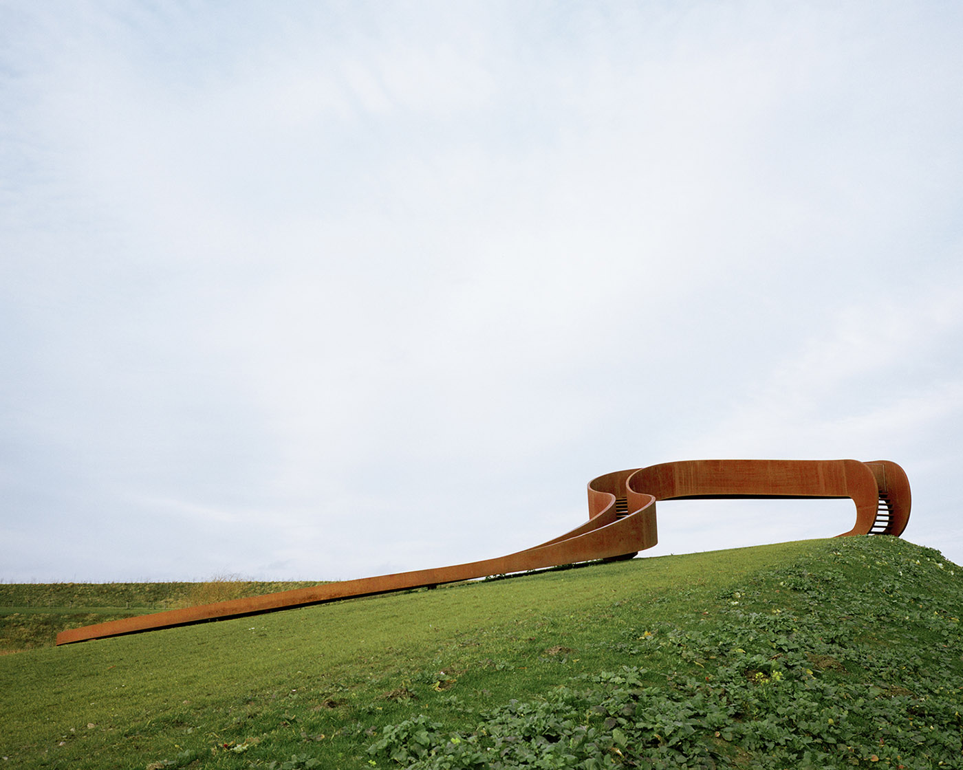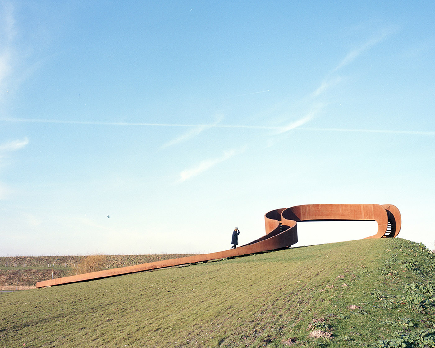 NEXT architects makes The elastic perspective based on the principle of Moebius' ring, a single surface that can only exist as a three-dimensional object. Because of its structure, the shape of the sculpture is difficult to perceive: each perspective generates a different image, related to the local artistic plane