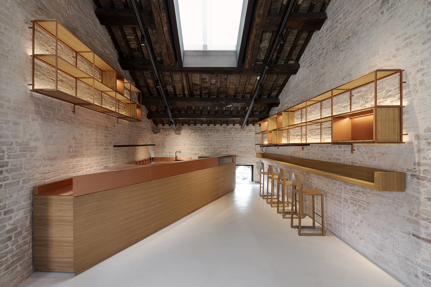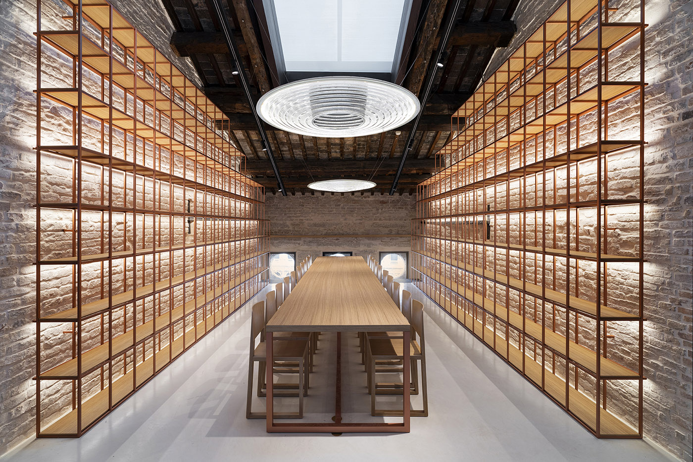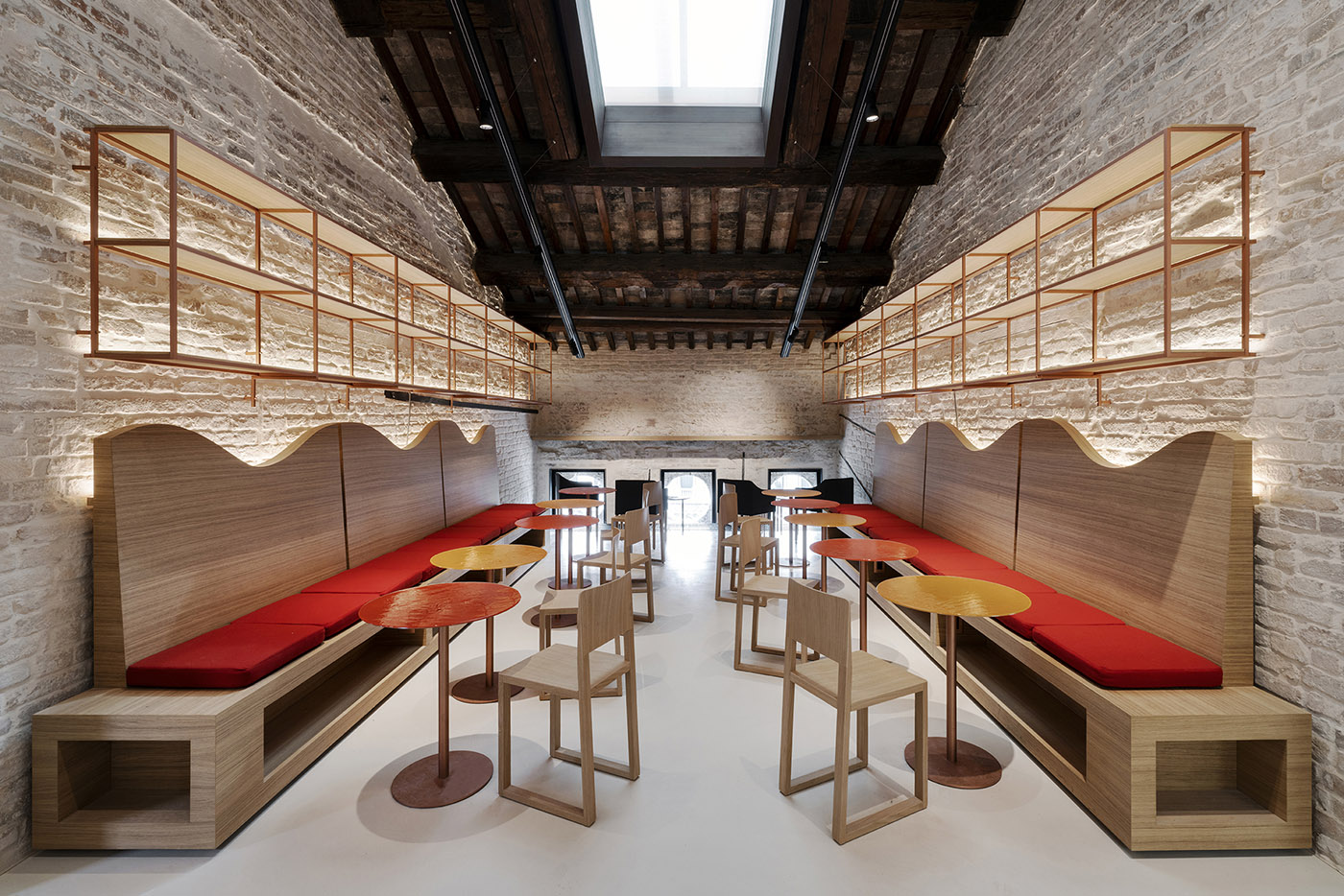The overall intervention translates into an integrated project that ranges from interior design to graphics and the design of digital content and all interactions, through the study of materials and light design, with an innovative and experimental approach - the true stylistic business card of the Studio, which generates sustainable and inclusive spaces. All the furnishings are designed by the studio that also maintains in its intervention a strong connection with the genius loci and the city of Venice, through the enhancement of the iconic historical elements present and the collaboration with local craftsmen