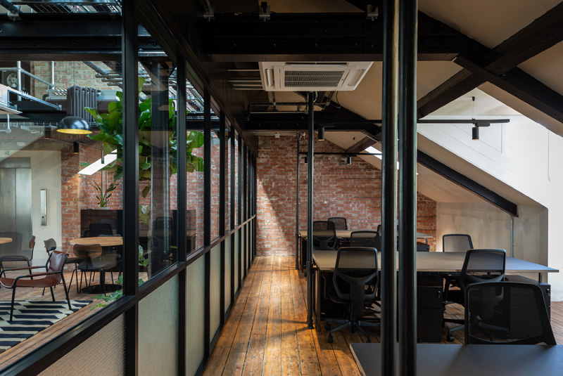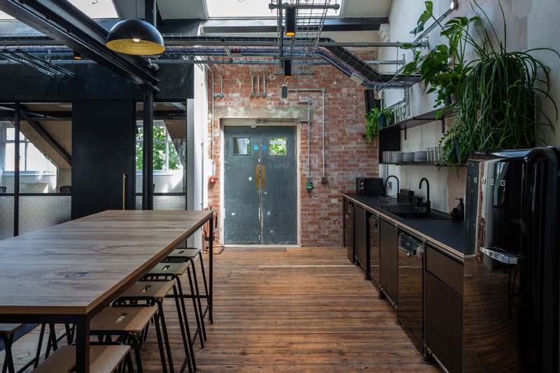 Former Victorian printing house renovated. Work spaces combined with social spaces