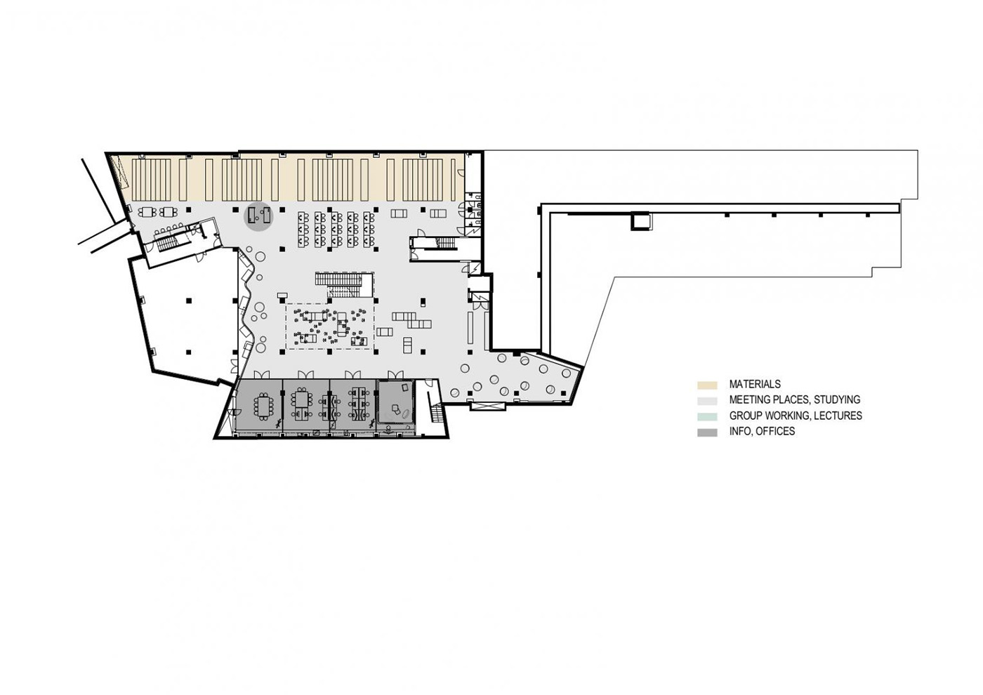 In the city of Aalto, Finland, the JKMM studio, in collaboration with Arkkitehdit NRT, carries out a radical restructuring of the spaces inside the Harald Herlin Learning Centre university library, transforming it into a multifunctional and modern cultural center where students are encouraged to experiment with innovative forms of learning and collaboration.