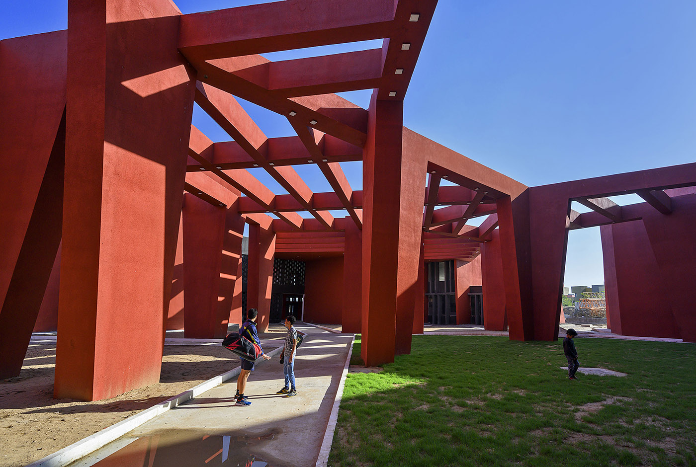 Sanjay Puri Architects interpreted the organic character of Indian villages to create the design of the school in Rajasthan. Taking into consideration the desert climate of its location each of the classrooms is oriented to the north to get indirect sunlight