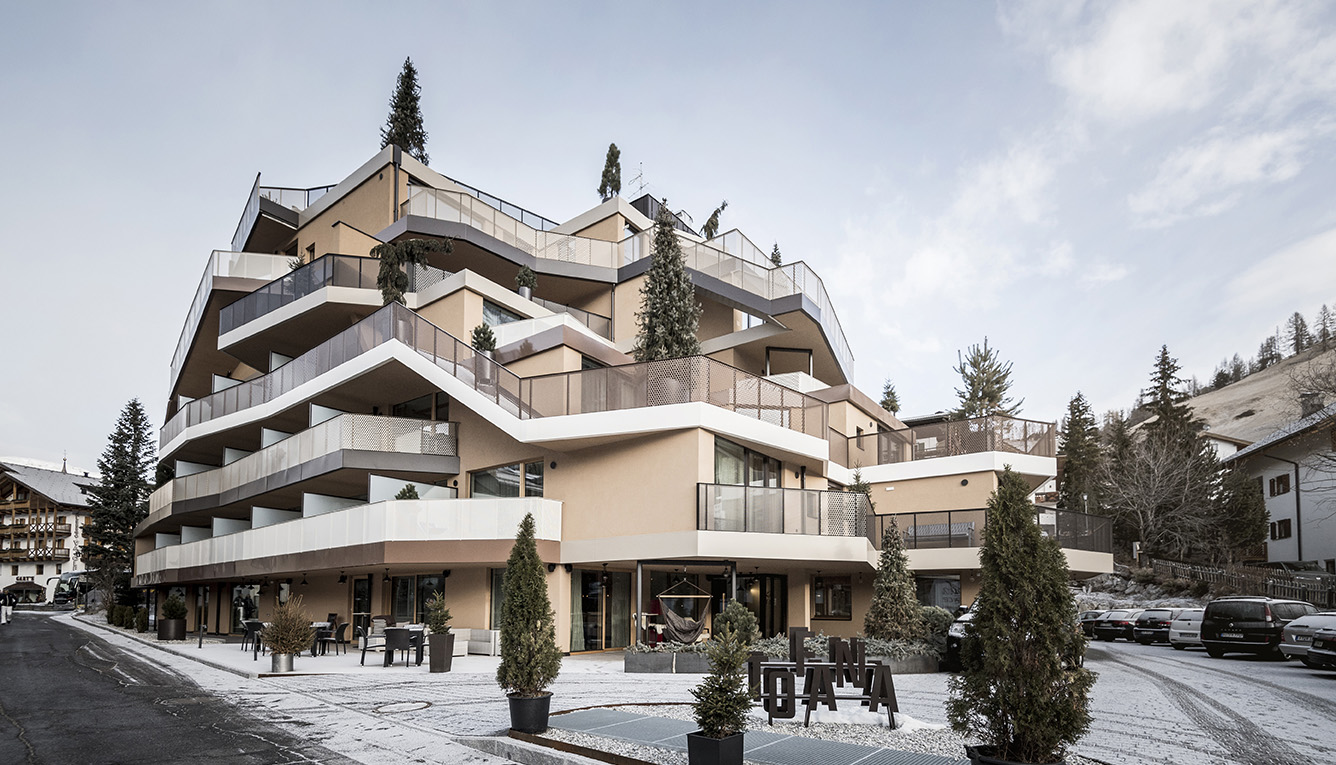 Reconstruction of Hotel Tofana in South Tyrol. A mountain source of inspiration for shapes and colors