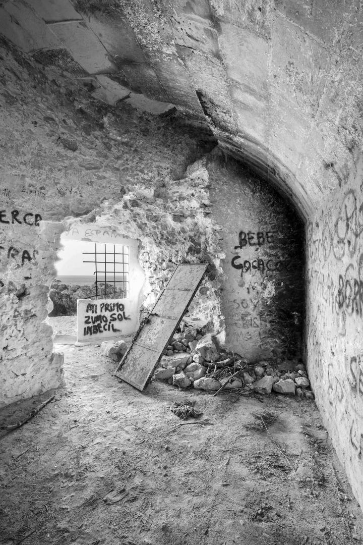 It is a building with a circular sole of 12.56 meters outside the diameter at the base. It has a truncated cone geometry and is divided into three levels. The ground floor includes a powder magazine and a larger room with the original stone staircase that connects with the main room and disappears whenever a hole used as a door during the 20th century was drilled