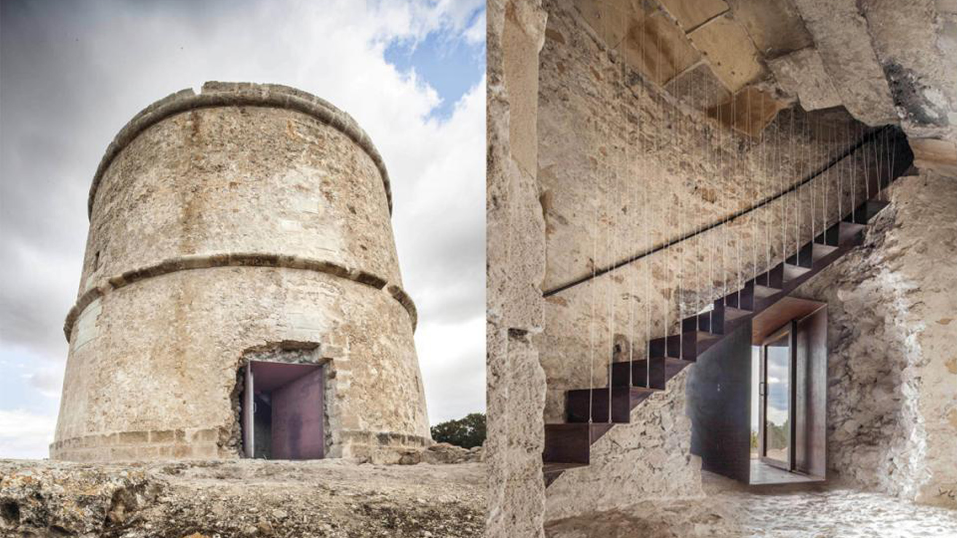 Built between 1762 and 1763, the " Pi des Català " tower on the coast of the island of Formentera, Spain, was restored for defensive purposes by the Marià Castelló Arquitecte studio