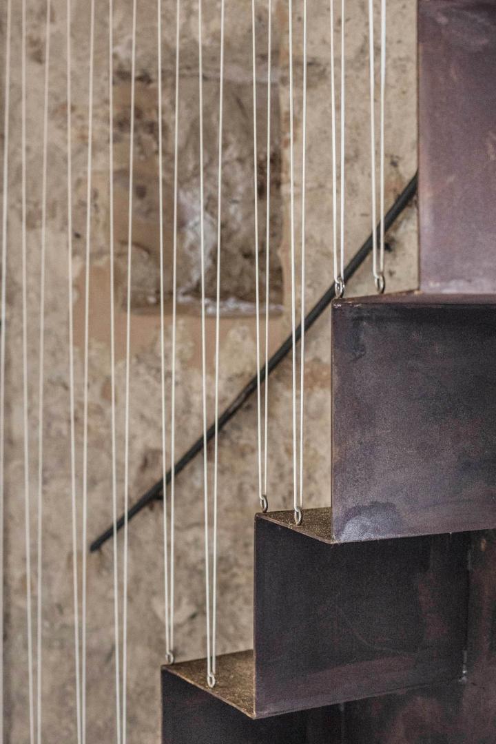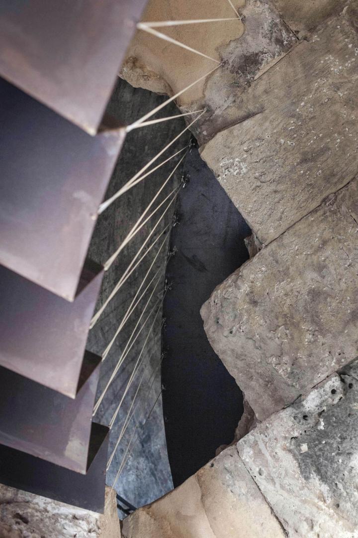 For the carpentry and other protective elements that did not exist at the time of the original construction, other materials such as Corten steel were used and were placed using the dry construction to further emphasize its contemporary and probably ephemeral nature
