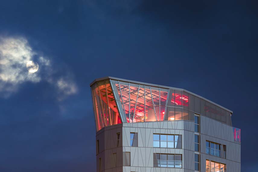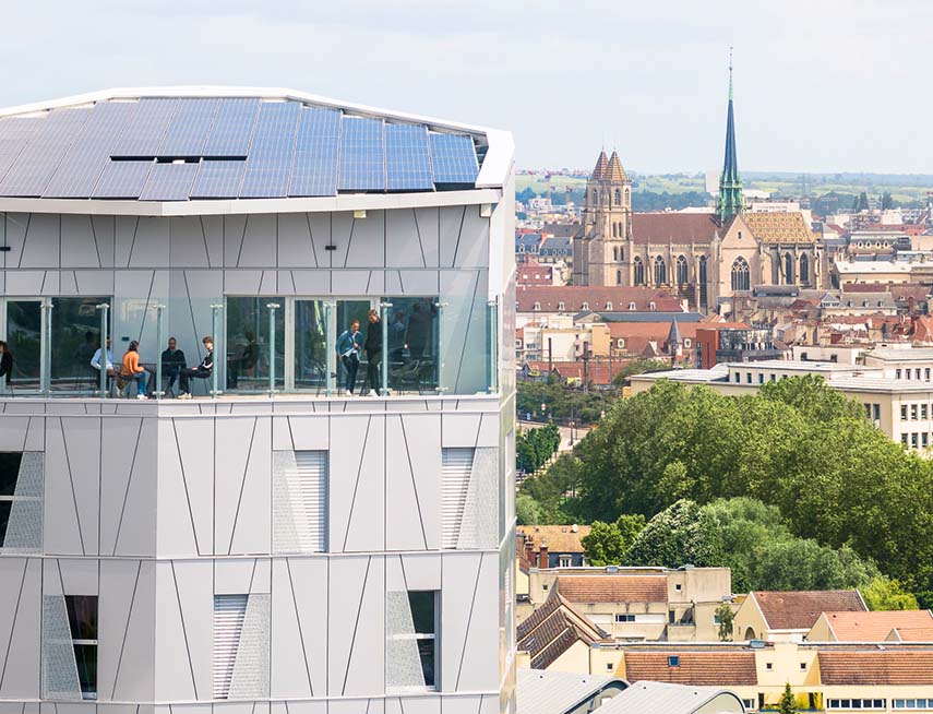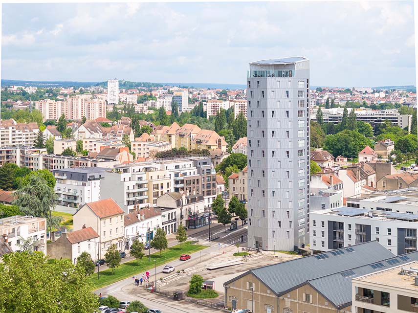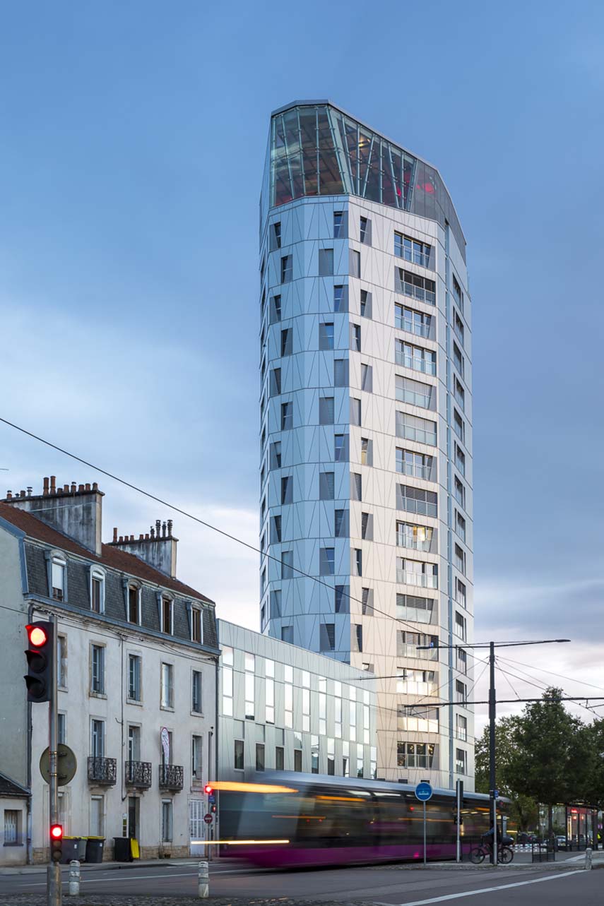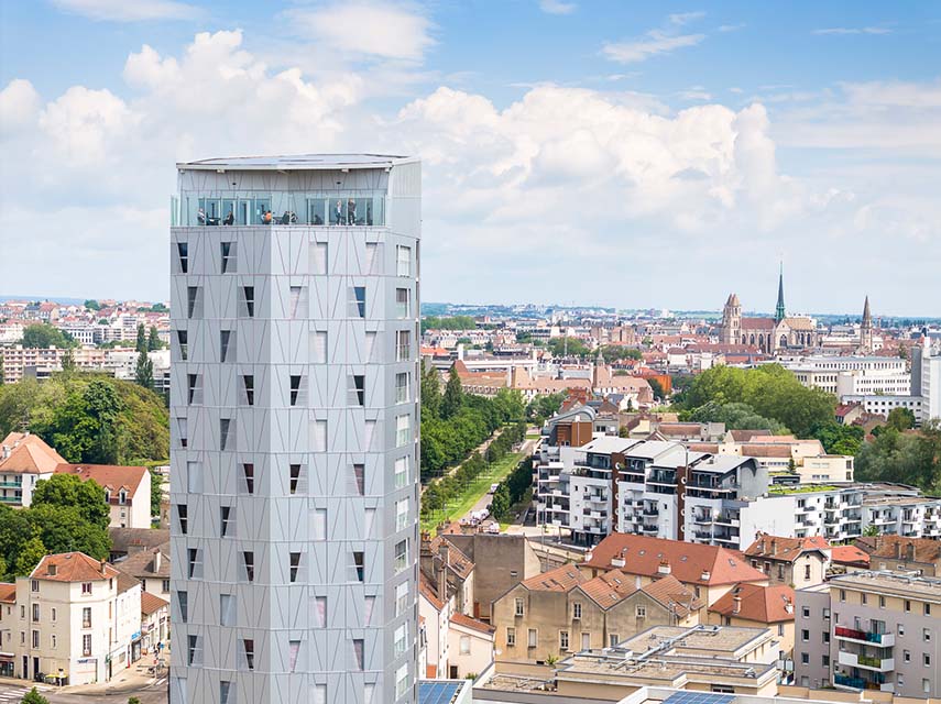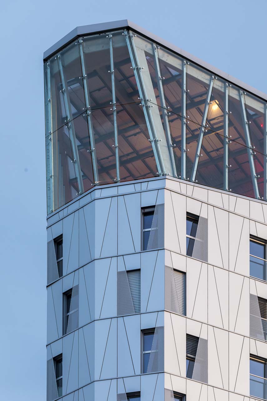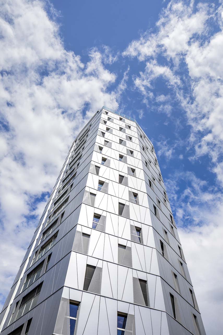 The Arsenal Tower rises over 18 floors and reaches a height of 57 meters, accommodating a total of 110 housing units, divided between 51 social housing units and 59 privately owned units. This residential complex is the city's second positive energy project, following the completion of the first positive energy office tower in 2008, also designed by Arte Charpentier. The tower is not just a residential building, but also a symbol of how it is possible to live in the city in a more sustainable and intelligent way.
