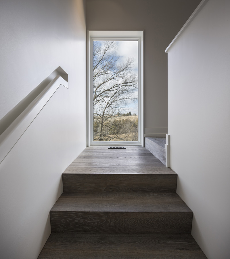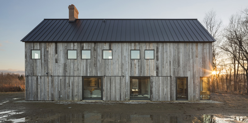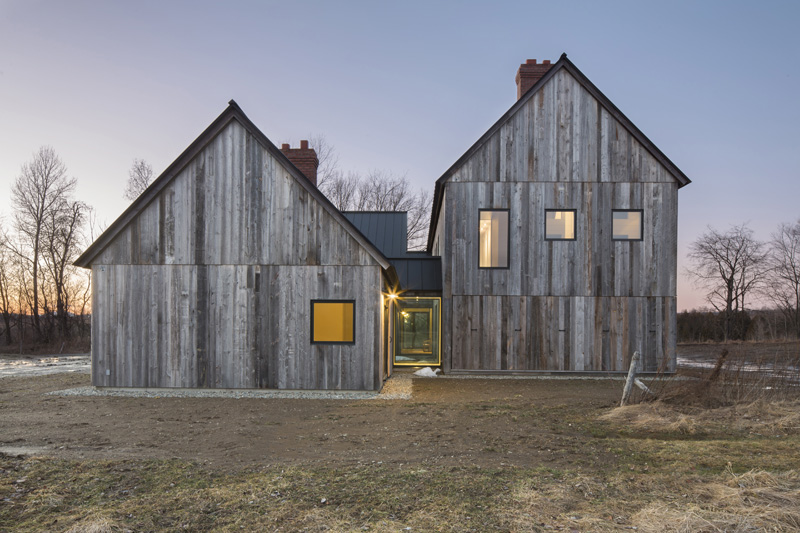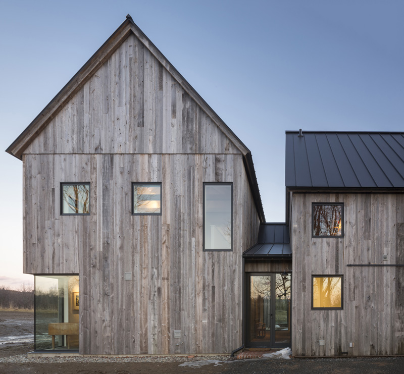 The cladding of the house was made of re-proposed hemlock, salvaged from dilapidated barns located in Ontario. The house was located on a farm, whose design after the renovation did not neglect its "agricultural roots". The spaces were grouped around a courtyard, reminiscent of the courtyard typical of Quebec granaries and barns in Ontario.
