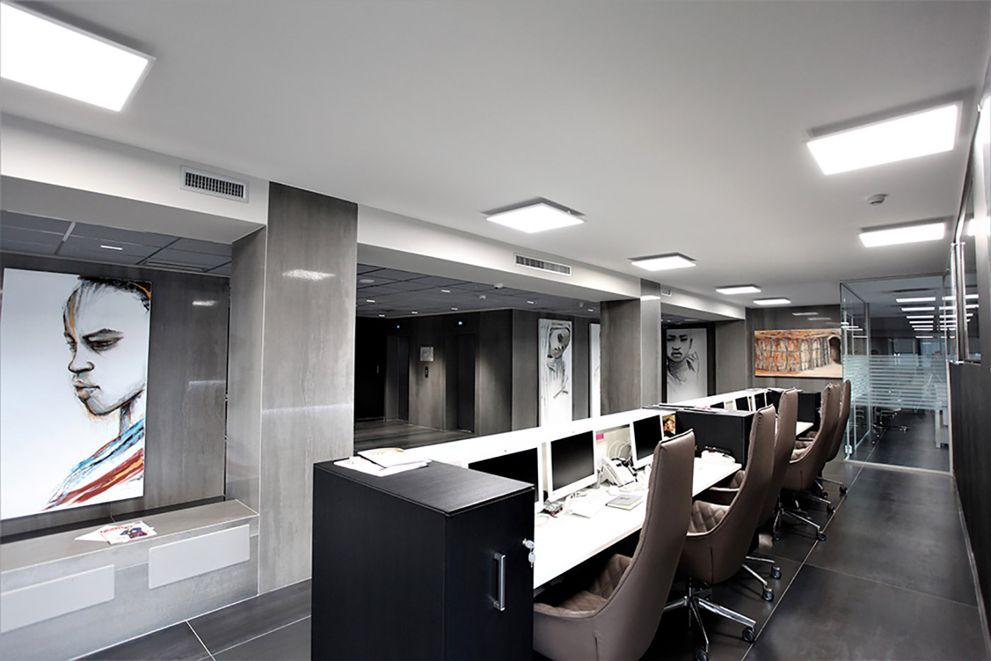 Over and above the traditional concept of renovation, the work at Pegaso University made maintaining its entire unitary character a priority, even though it extended over 7 floors of approximately 500 sq.m. each with a specific use. All the requested variations were accommodated during the contract period. Only the 21st floor, allocated to the Dean and general management, was modified to provide a more prestigious ambiance. Rather more than office space, it was designed to include a welcoming reception area to entertain guests, featuring a coffee bar at the entrance and a kitchen with adjoining dining area, to encourage more informal meetings