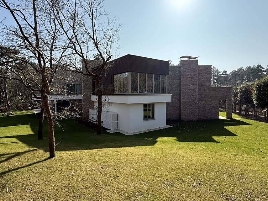 The Villa Go Faste is located in the landscape of the forêt du Touquet, in a natural context of great value. The project, designed by Alain Demarquette Architecte, involves replacing a traditional villa of no particular distinction with a contemporary residence that is sensitive to its surroundings. Similar to the original construction, the building is positioned at the center of the plot, preserving the tall trees that characterize the land as much as possible.
