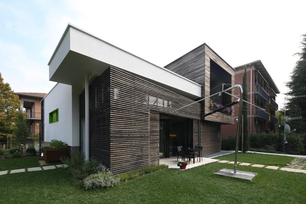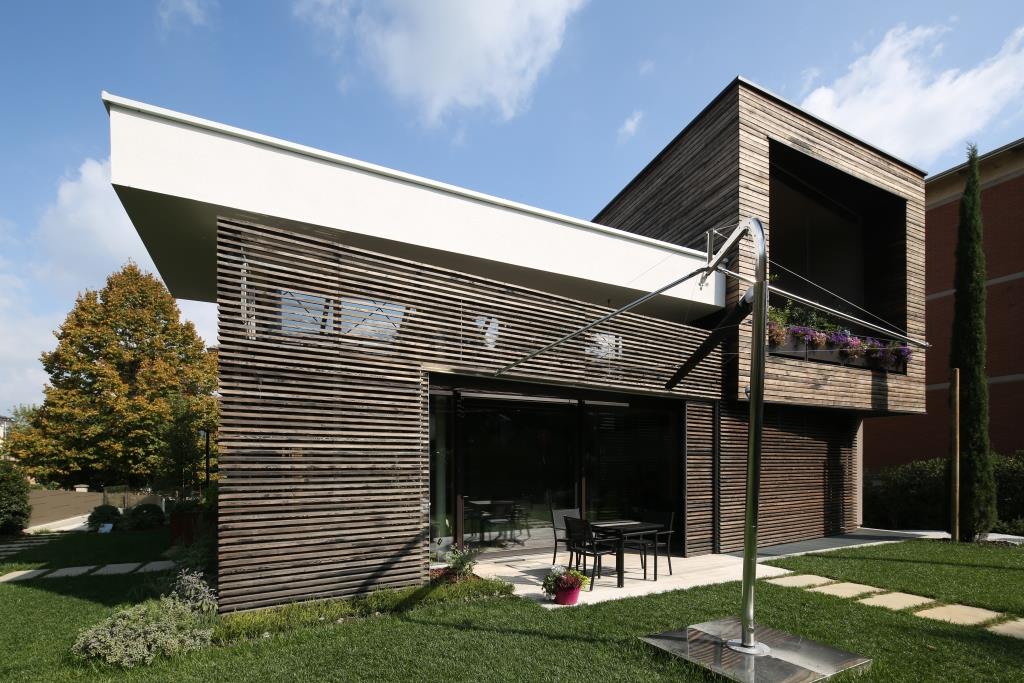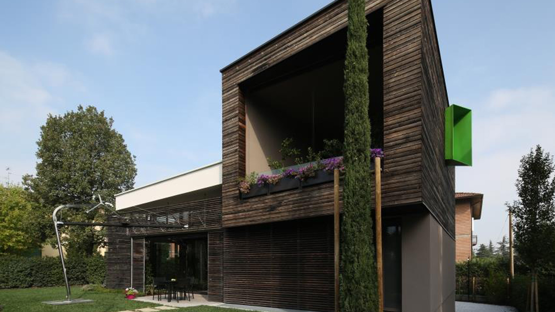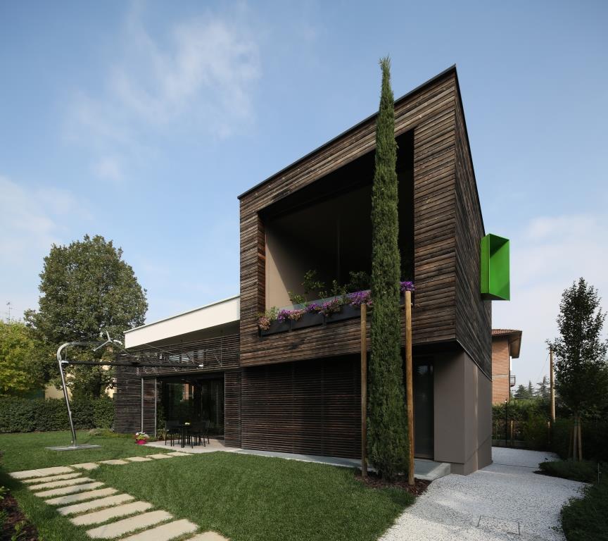 The X-Lam green building house with wooden panel structure, built in the province of Reggio Emilia by the architect Montanari of the Archetipo-Cavriago Studio, is so different from the traditional buildings of the area that it has become a source of attraction and admiration