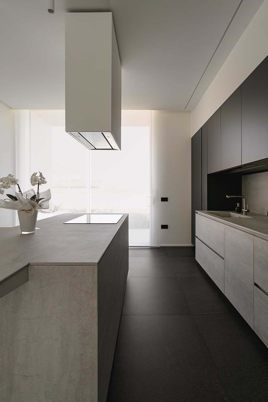 Immersed in the Mantuan countryside, Villa Tenca is a manifesto of elegance and integration between architecture and landscape. Designed by architect Angelo Tenca as his personal residence, it stands out for its structure articulated in pure and ample volumes, where indoor and outdoor spaces blend in perfect harmony. The project stems from a deep connection with the context, enhancing light and greenery as fundamental elements of the living experience, through large openable windows and essential design shading systems.