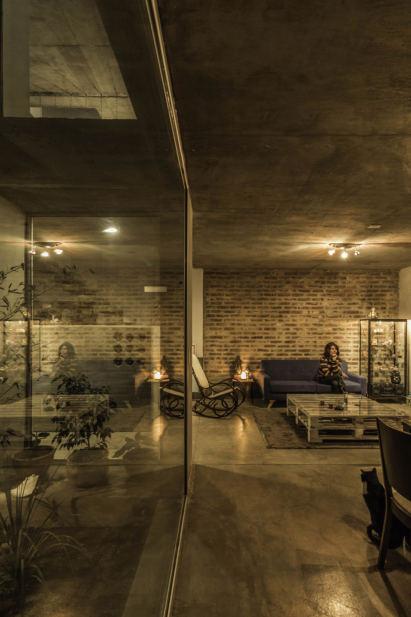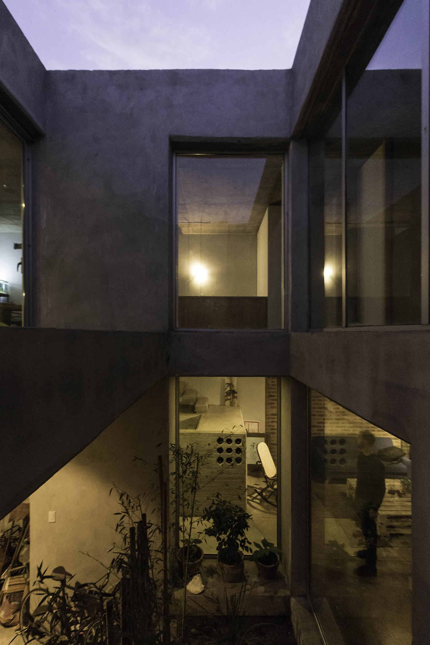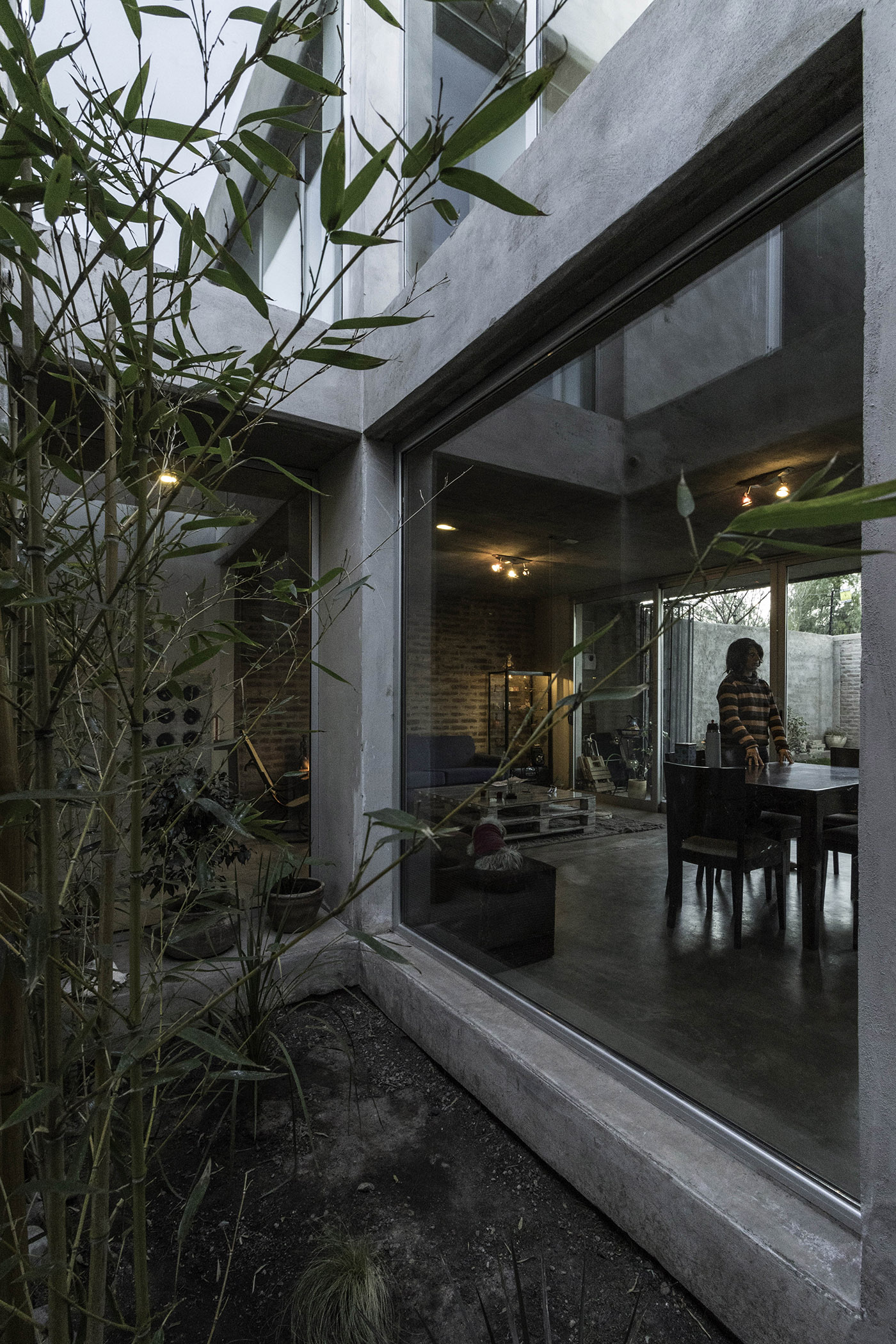 The material proposal of the work has a unified logic at both levels. The presence of exposed finish reinforced concrete is found in various sectors of the house: as a pantry element in the kitchen, as the monolithic base of the first section of the stairs, and as a blind partition towards the urban front to provide privacy to the upper floor on the south side. Another characteristic element is the brick walls that in some points remain uncovered to show the artisanal manufacture. Glass accompanies the inhabitants as they move through their house and gives rise to various internal views and perspectives. Finally, a system of metal sunbreakers acts as an interactive skin with horizontal stripes, both movable and fixed