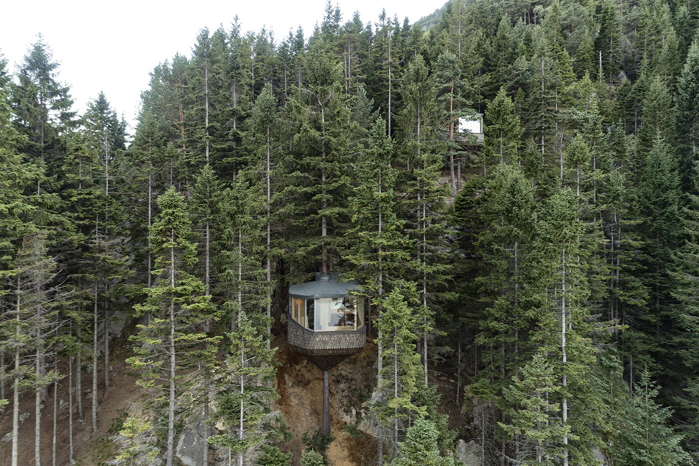 The journey to the Woodnest site begins with a picturesque 20-minute walk from the town of Odda, on the edge of the fjord, crossing a forest and following a steep winding path. This route introduces the visitor to the design philosophy, gradually preparing for immersion in architecture that blends seamlessly with the landscape. Each treehouse is accessible through a small wooden bridge, serving as a link between the ground and the structure, guiding the guest through a transition experience from the ground space to the canopy of the century-old trees. This project stands out among the most striking sustainable architecture projects, where the interaction between construction and natural context is a fundamental element.