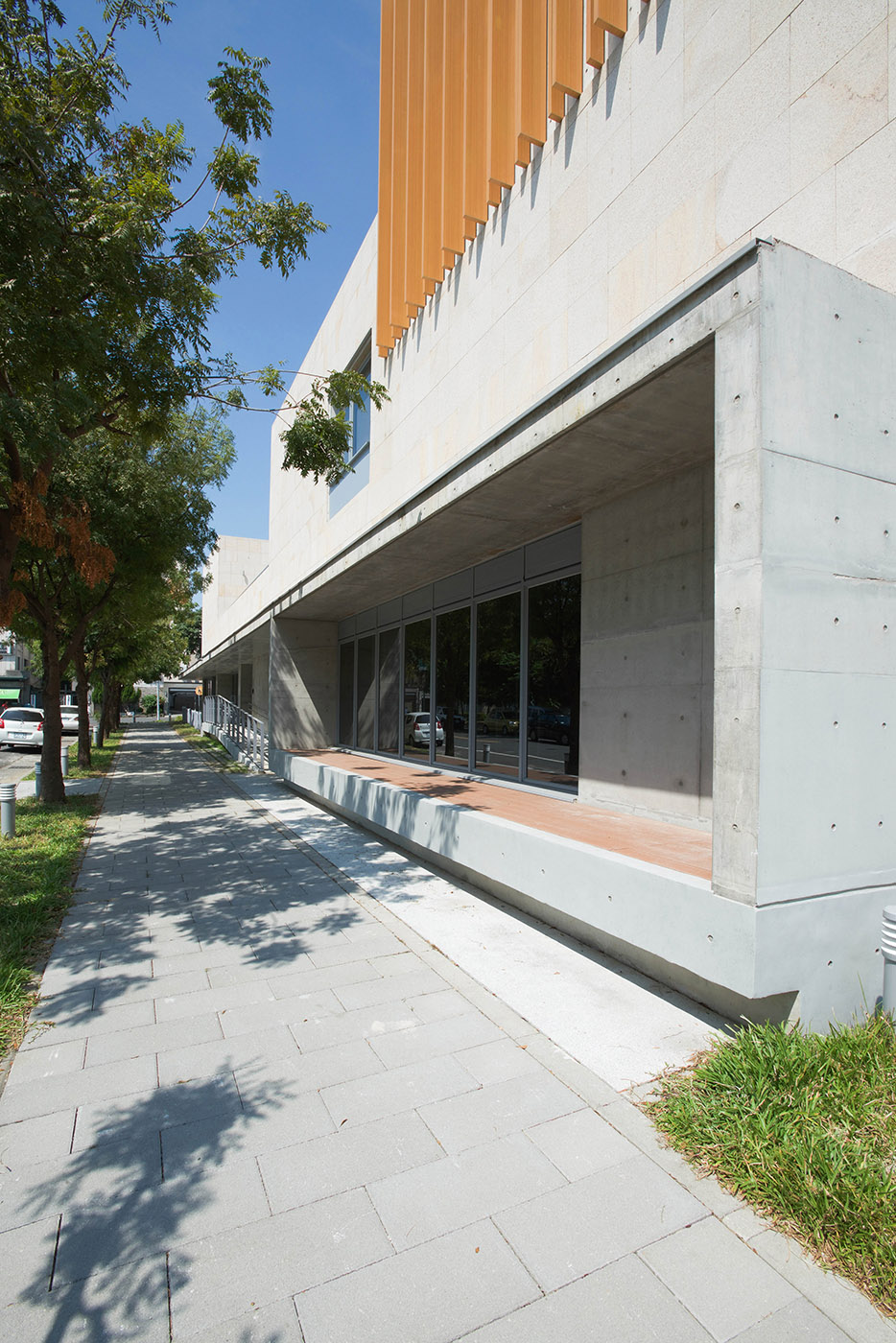 Inserting themselves in a historical and socio-cultural context, the wooden elements above the lower concrete volume are fundamental to convey the idea of books and symbolize the reading area