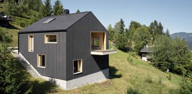 In the village of Frastanz - Gampelün in Austria, in the midst of majestic pre-existing country dwellings, stands a wooden tower-house with a structure made entirely from trees on the client's property, cut at a propitious lunar phase. All the material used for the construction was produced within a maximum radius of 50 kilometers from the site