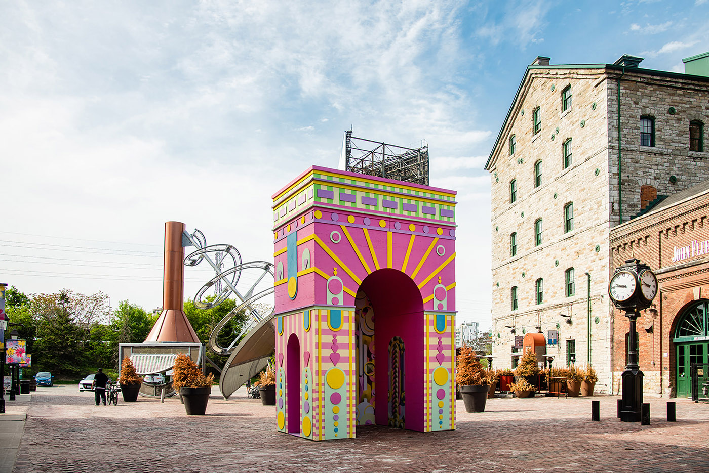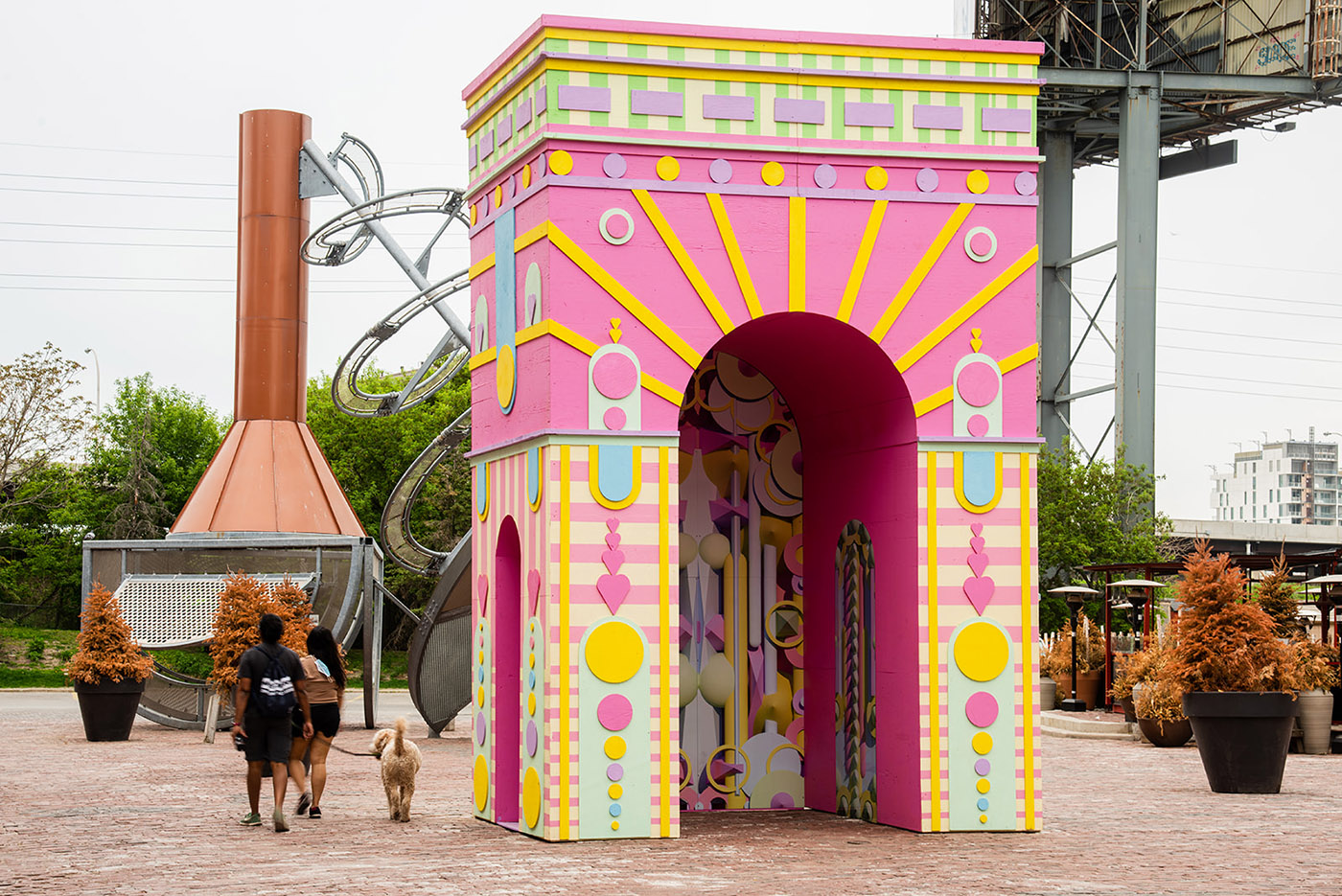 El propio arco actúa como marco de un portal/refugio virtual visto en realidad mixta, un espacio de nuevos mundos digitales: entornos creativos diseñados para animar a los visitantes a jugar e interactuar juntos digital y físicamente. En última instancia, la pieza es una mezcla evolutiva de arte digital y arquitectura física que crea interacciones lúdicas entre estas realidades.