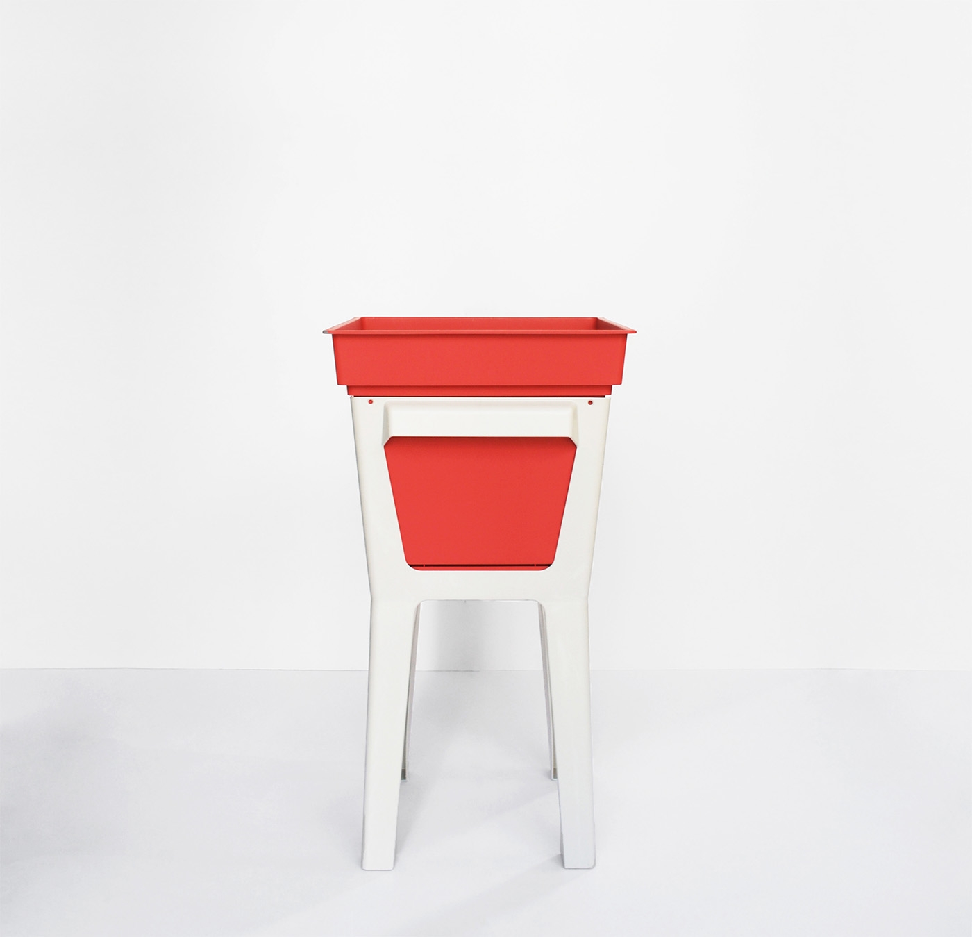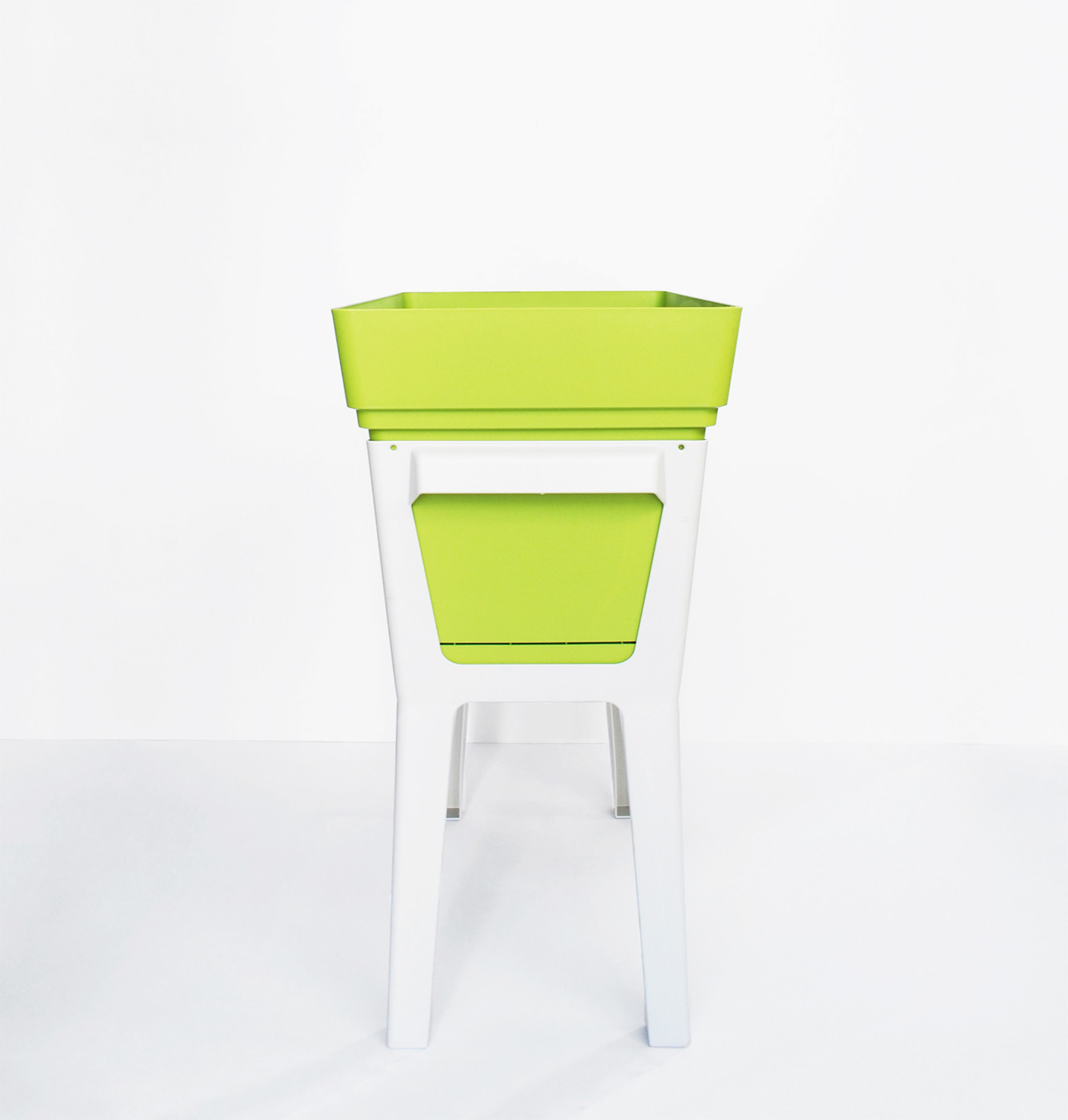 Il progetto è componibile e una volta che le gambe sono applicate al vaso, lo portano ad un'altezza che permette di prendersi cura delle proprie coltivazioni stando in posizione eretta