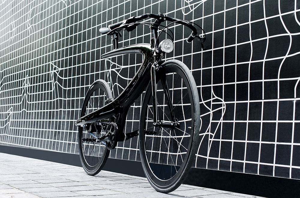 La Gama Carbon, carbono, material ya utilizado en la producción de bicicletas gracias a sus propiedades de resistencia y ligereza. En este caso, gracias a su ligereza, la sensación de ingravidez es muy real. La gama de madera es un homenaje a la artesanía, este modelo hecho completamente de madera hecha a mano se combina perfectamente con las inserciones en piel marrón, además de ser un objeto de reflexión sobre la movilidad urbana