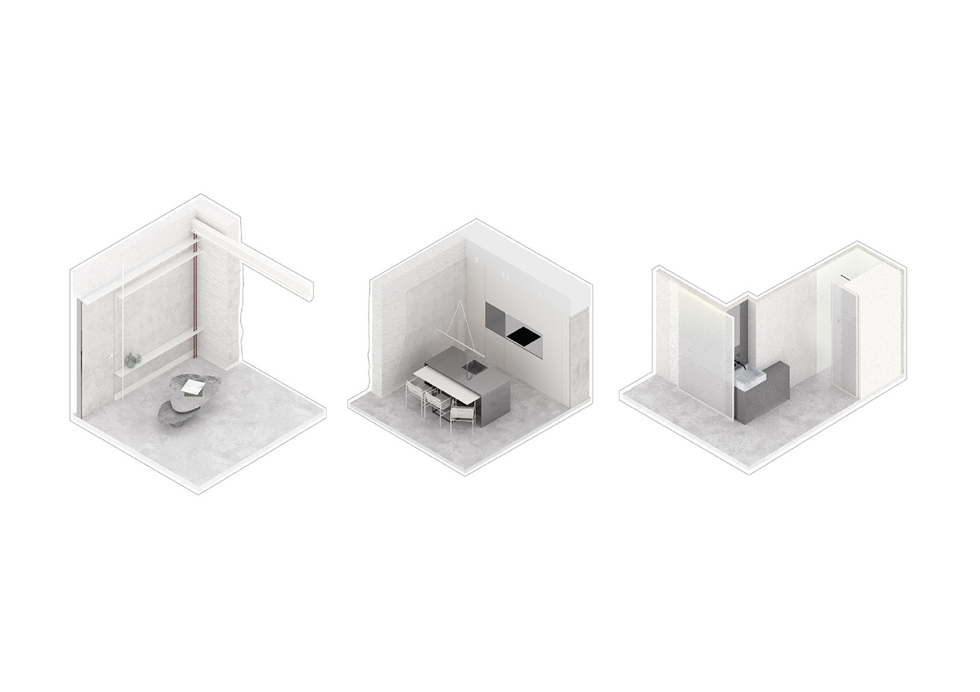 El proyecto de diseño interior propuso como solución una pared de espejos estratégicamente colocada para reflejar y redistribuir la luz natural procedente tanto del este como del oeste. Las exigencias de uso de la vivienda de los propietarios también hicieron de la iluminación artificial un punto importante en el desarrollo del proyecto. Diferentes tipos de LED se integraron en las estructuras del edificio para crear juegos de luz que transforman los espacios en función de su uso