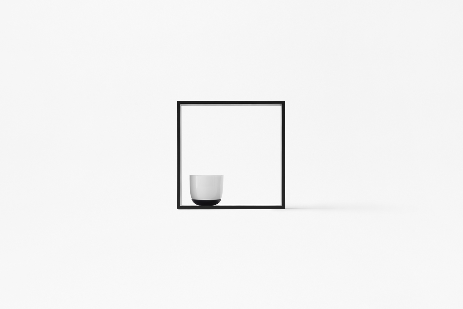 Cuencos, jarrones, una bandeja, un espejo, sujetalibros y otros accesorios completan la colección y se mantienen en su lugar mediante imanes que los mantienen firmemente en su lugar sin la necesidad de una gran área de contacto. Una variedad de accesorios y luces combina este objeto "marco", como si se estuviera reorganizando al azar el interior de una habitación en miniatura