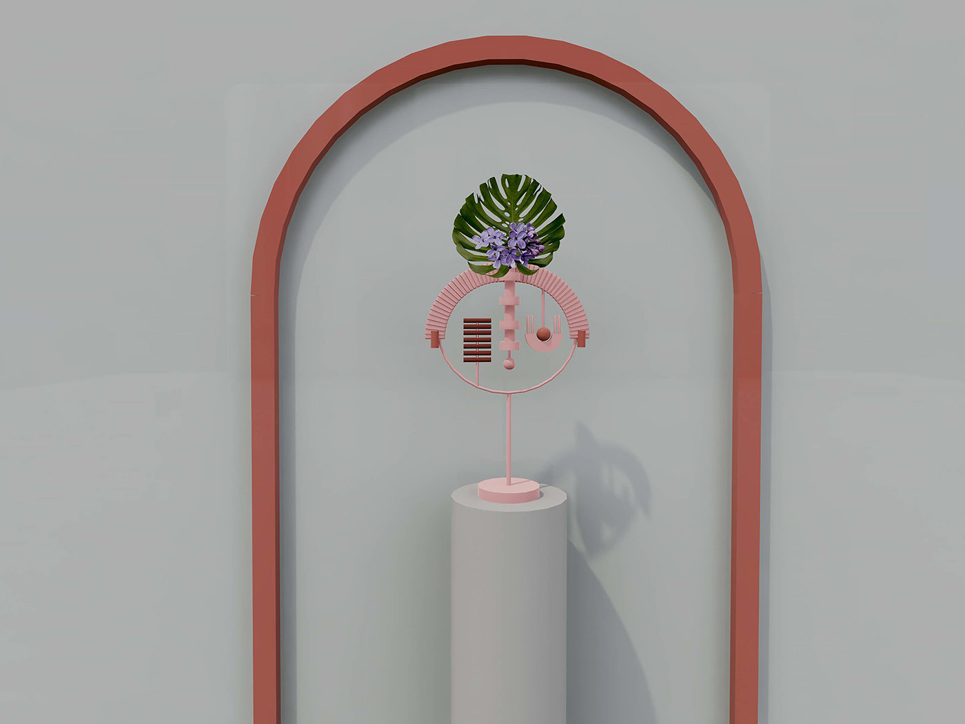 Los dos mini jarrones, fabricados en acero con recubrimiento de polvo y madera MDF, dan cabida a una sola flor y, al igual que los espejos, llenan el espacio como piezas de arte con una clara referencia a las obras abstractas