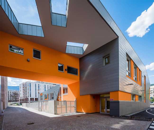 La scuola progettata dall'Architetto Antonio D’Alessandro, nel quartiere Casanova a Bolzano, è certificata CasaClima A e CasaClima School. Onora requisiti bioclimatici ed ecosostenibili con il giusto equilibrio tra sistema naturale ed antropico