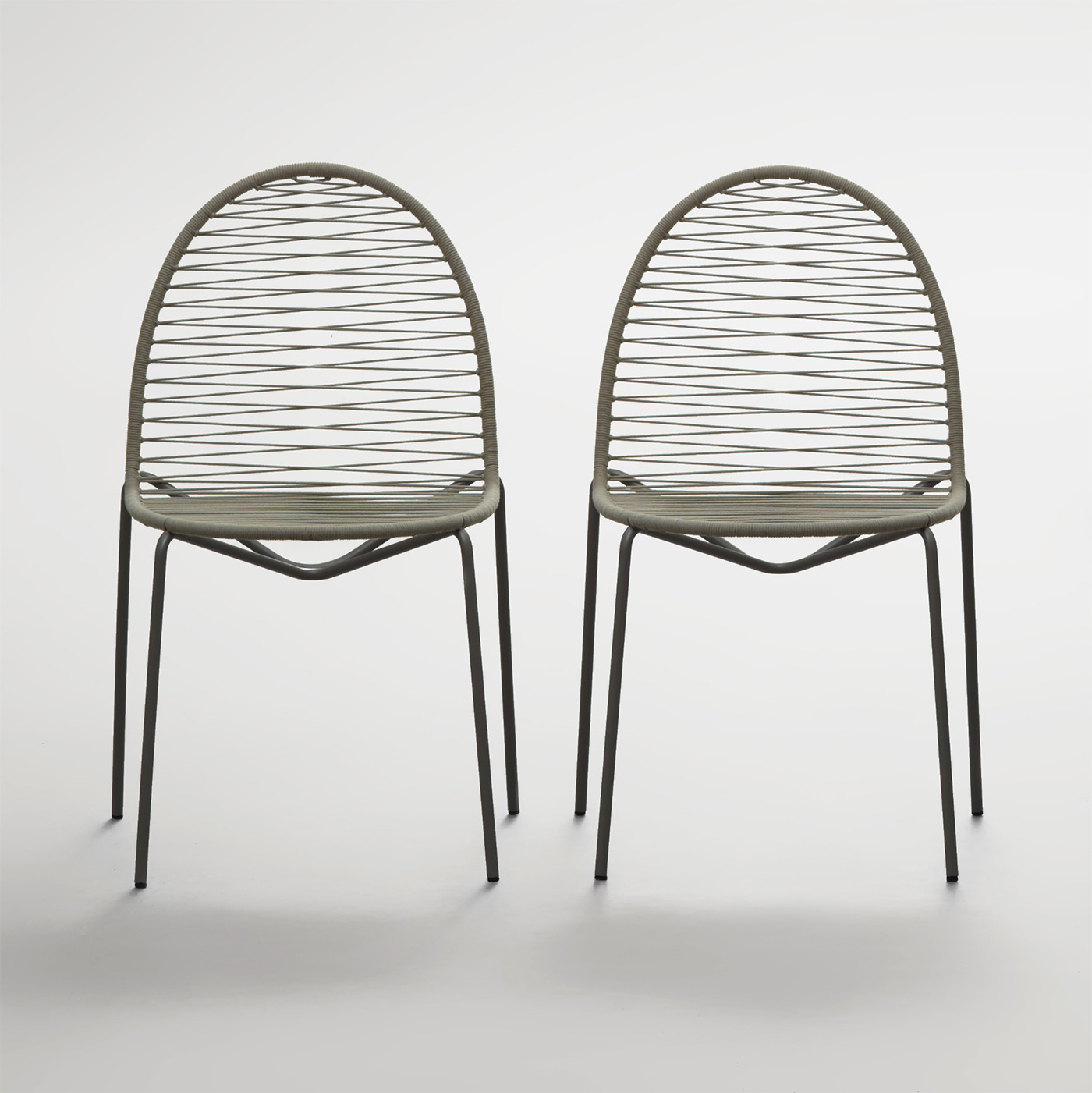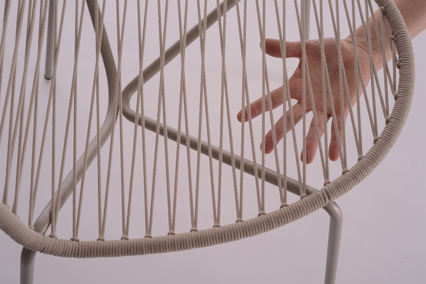 Sen-To è la versione con intreccio, realizzato a mano su telaio metallico con una corda tecnica. Questa versione è prevista per uso esterno ed è disponibile con corda in due colori coordinati alle strutture in acciaio laccate “exterior grade” in una gamma di nove colori