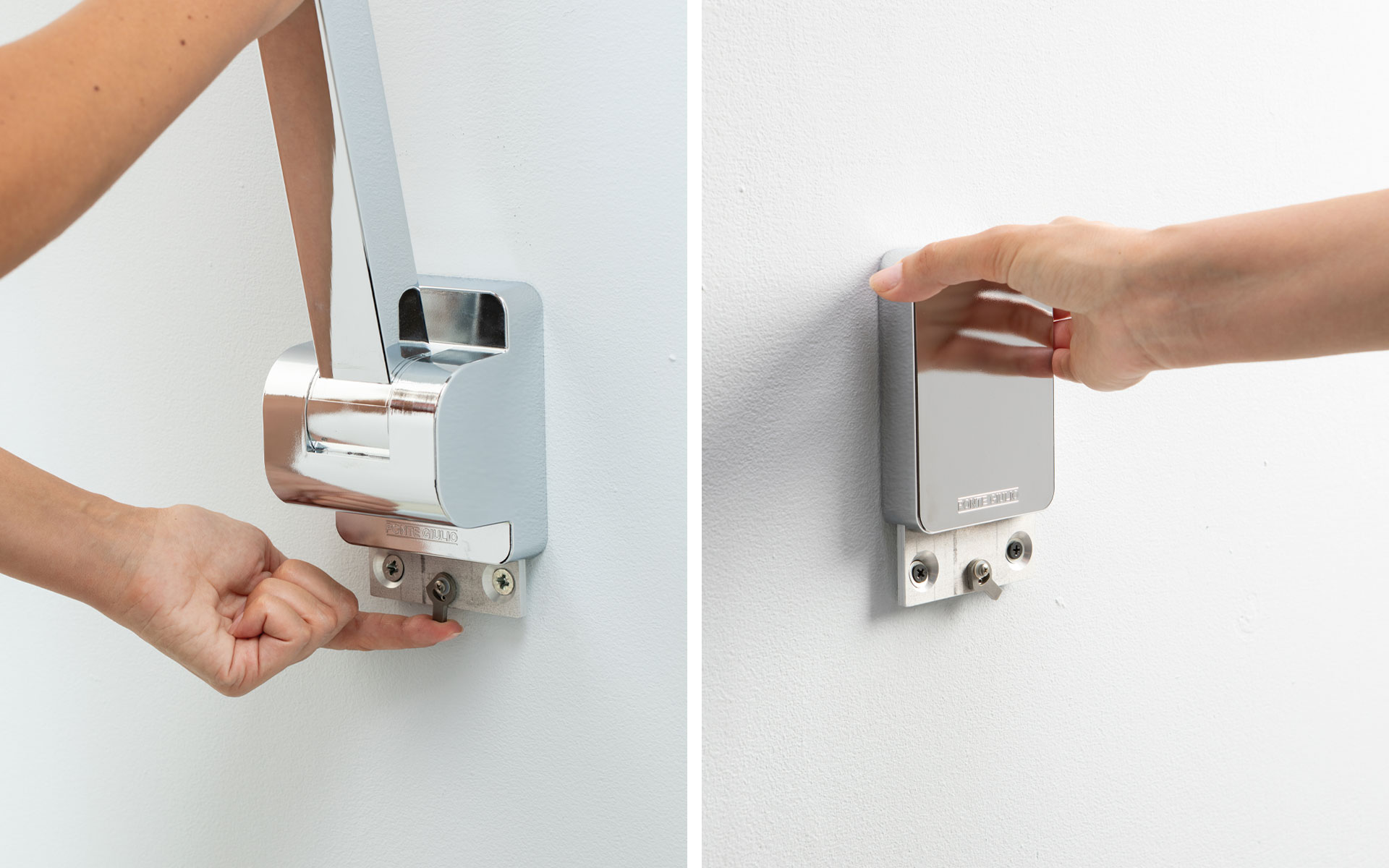 Compuesto por un brazo y un sistema de placa de aluminio. La cubierta de la placa y el cilindro del punto de pivote son de ABS, y los acabados se pueden personalizar según las necesidades específicas. Una ayuda perfecta para equipar el baño para discapacitados.