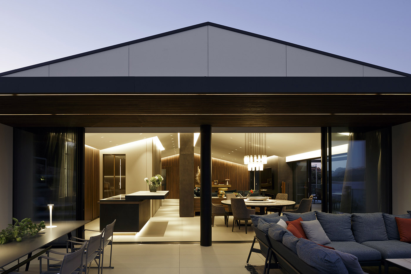 I materiali scelti per gli esterni e gli interni sono stati valorizzati con l’idea di esprimere tutto il loro potenziale, abbinandoli e accostandoli fra di loro per affinità e per contrasto. I toni sono per lo più scuri ma caldi, con tocchi di colore calibrati che creano un'atmosfera elegante e accogliente