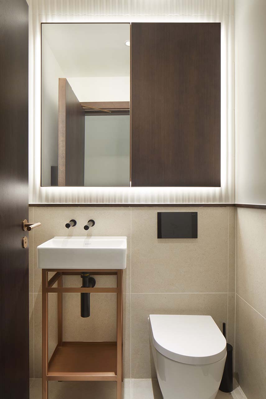 La inspiración de Squire and Partners para el diseño de 18-20 Greycoat Place se deriva del estilo arquitectónico predominante en la zona, en particular el Art Déco, visible en edificios históricos como la Artillery House. Los pilares de arenisca que se elevan verticalmente a lo largo de la fachada no solo rinden homenaje a este estilo, sino que también crean una continuidad visual con los bloques residenciales circundantes. La elección de materiales, como la arenisca roja y los elementos de aluminio oscuro, se inspira en los edificios icónicos de la zona, incluida la Catedral de Westminster, fusionando así historia y modernidad en un diálogo arquitectónico cohesivo.