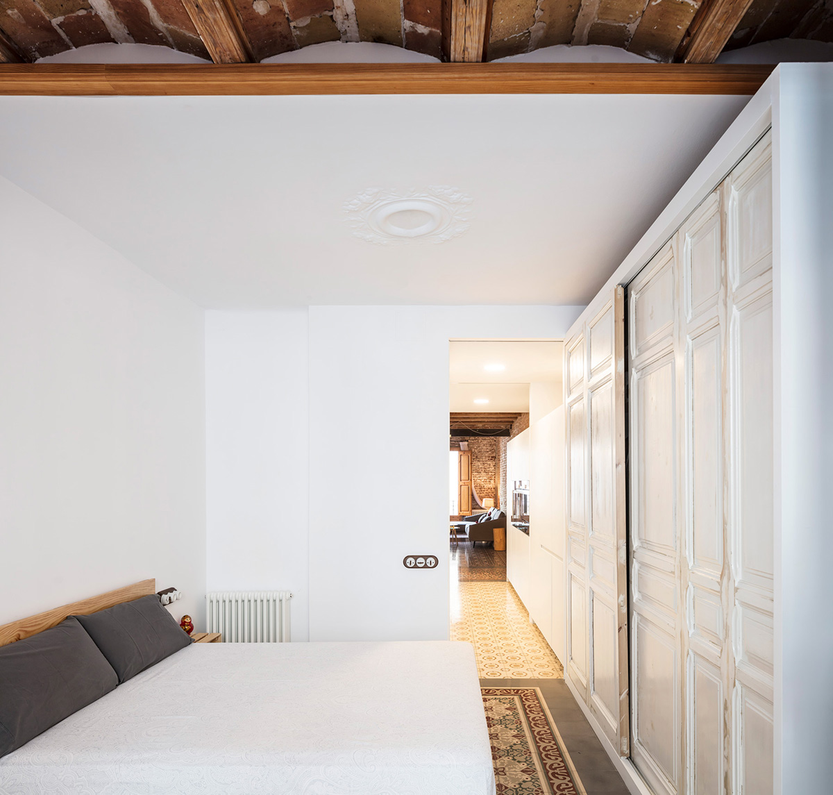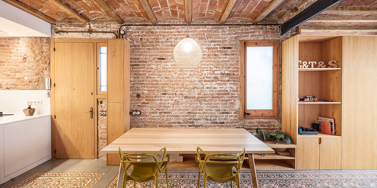 Se trata de un quinto piso, el apartamento de aproximadamente 70 metros cuadrados estaba mal distribuido y en malas condiciones. Carles Enrich Studio restaura los espacios interiores, dando vida a espacios encadenados y luminosos, con un diseño cuidado