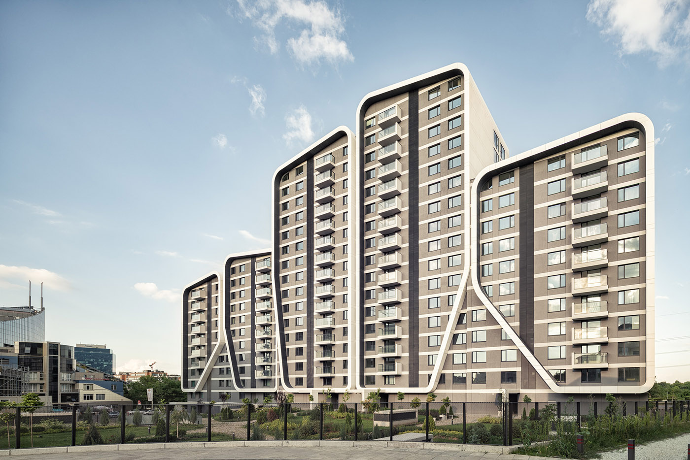 En total, las unidades residenciales son 158 viviendas, cada una con una excelente funcionalidad y una posición geográfica favorable: cada sala de estar está situada al este/sureste, está ricamente acristalada y tiene vistas al Monte Vitosha y al paisaje urbano. La planta baja está diseñada para uso comercial con tiendas que varían en tamaño de 50 a 100 metros cuadrados. El estacionamiento está proporcionado por dos niveles subterráneos y toda el área libre en superficie está dedicada al paisajismo y recreación