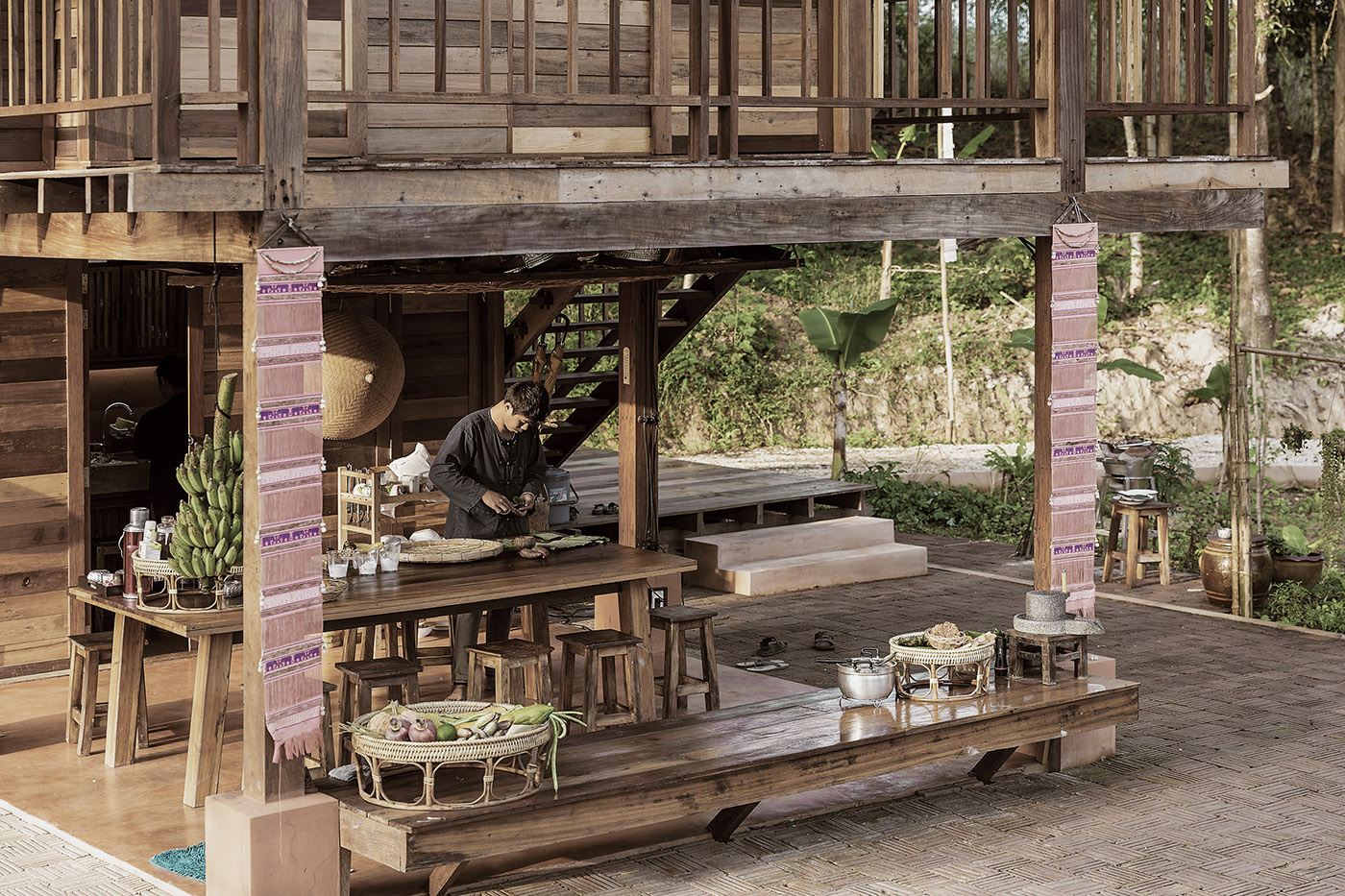 En el distrito de Mae Chan, el proyecto de alojamientos AHSA FARMSTAY aborda el problema cada vez más alarmante de la sustitución de los edificios tradicionales por edificios de cemento, erosionando la relación entre las casas vernáculas y los habitantes