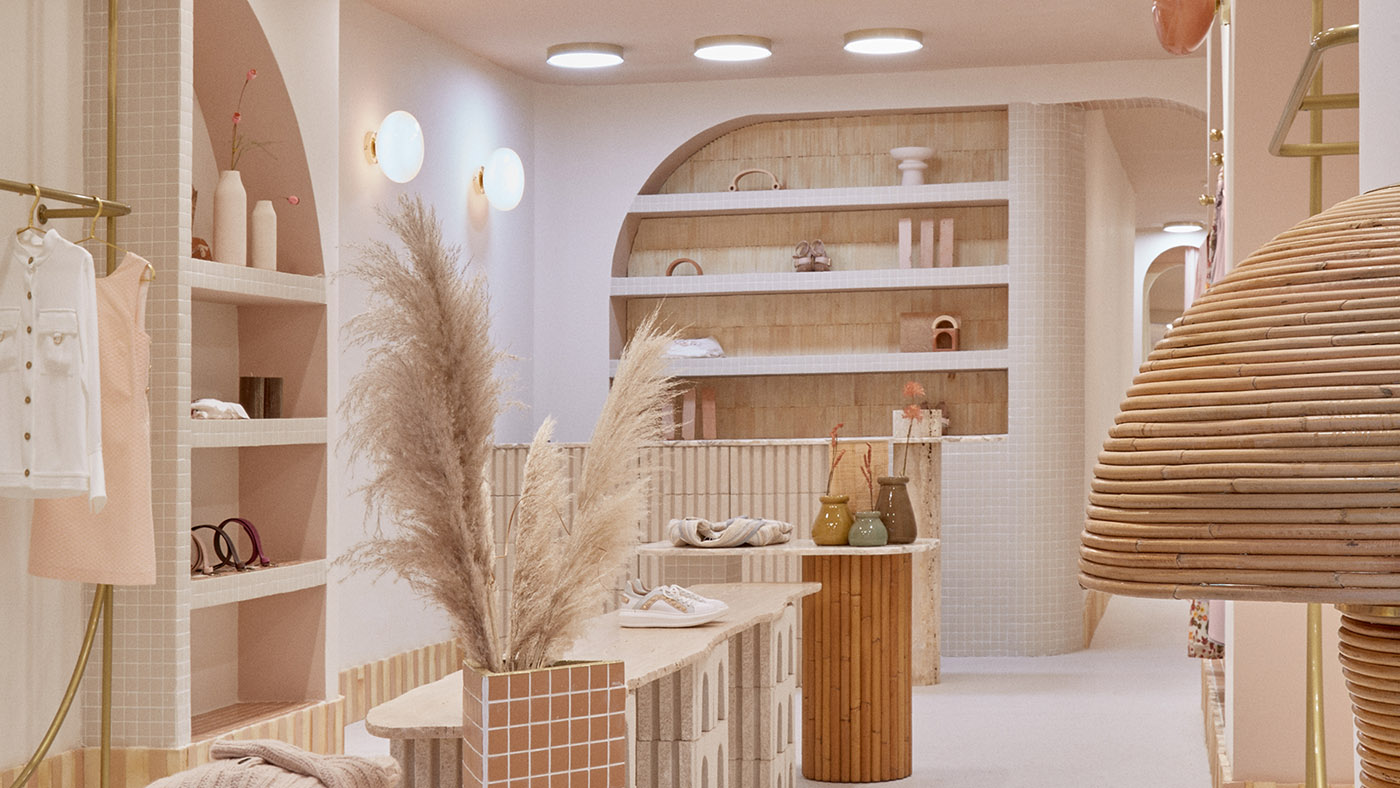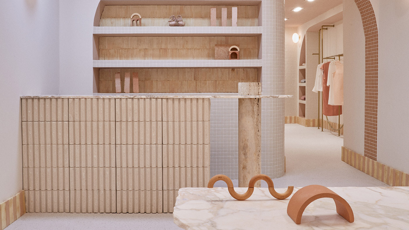 An&Be, una marca española con producción en Madrid, ha elegido el estudio de arquitectura especializado en proyectos de diseño de interiores para locales comerciales Patricia Bustos Studio para la realización de su propia tienda concepto. Todos los elementos de diseño utilizados, las particiones en arco, las piedras naturales, los bloques de cemento, la terracota, el mosaico y el ratán natural, subrayan la artesanía que caracteriza a la marca.