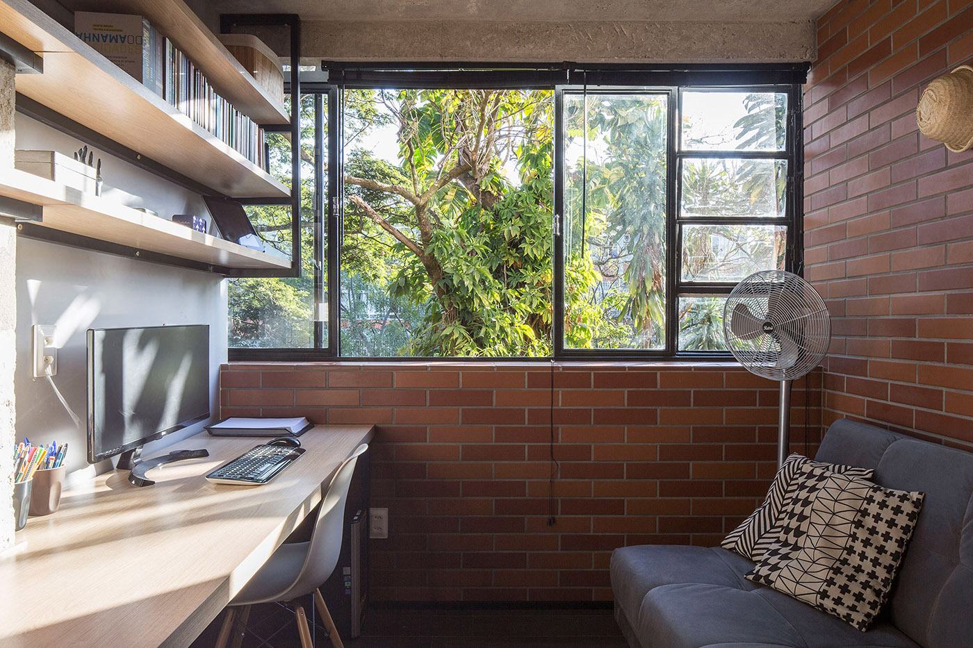 CoDA arquitetos, estudio brasileño, reestructura un pequeño apartamento que forma parte de un complejo residencial de la década de 1960 en uno de los barrios más antiguos de Brasilia, Asa Norte, una intervención caracterizada por el uso de cerámica roja